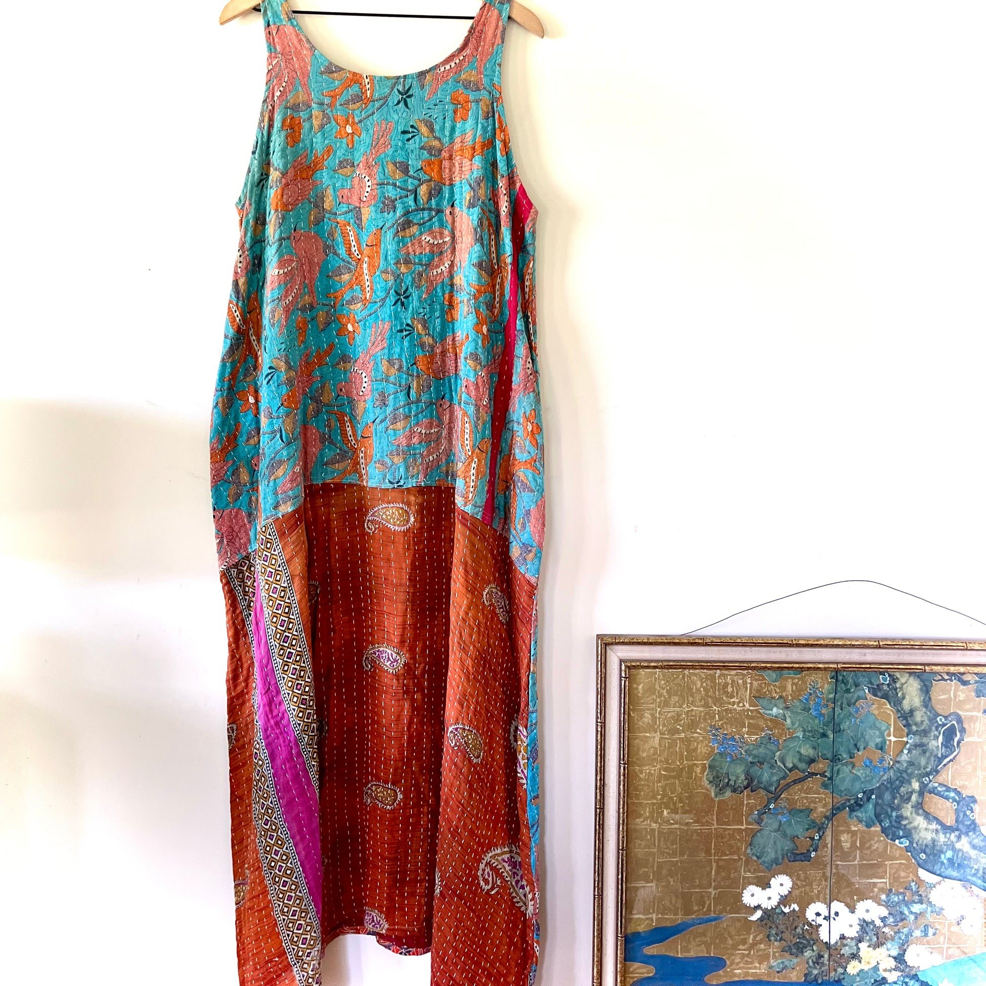 body made from 100% repurposed cotton saris, pockets & trim made from 100% new cotton