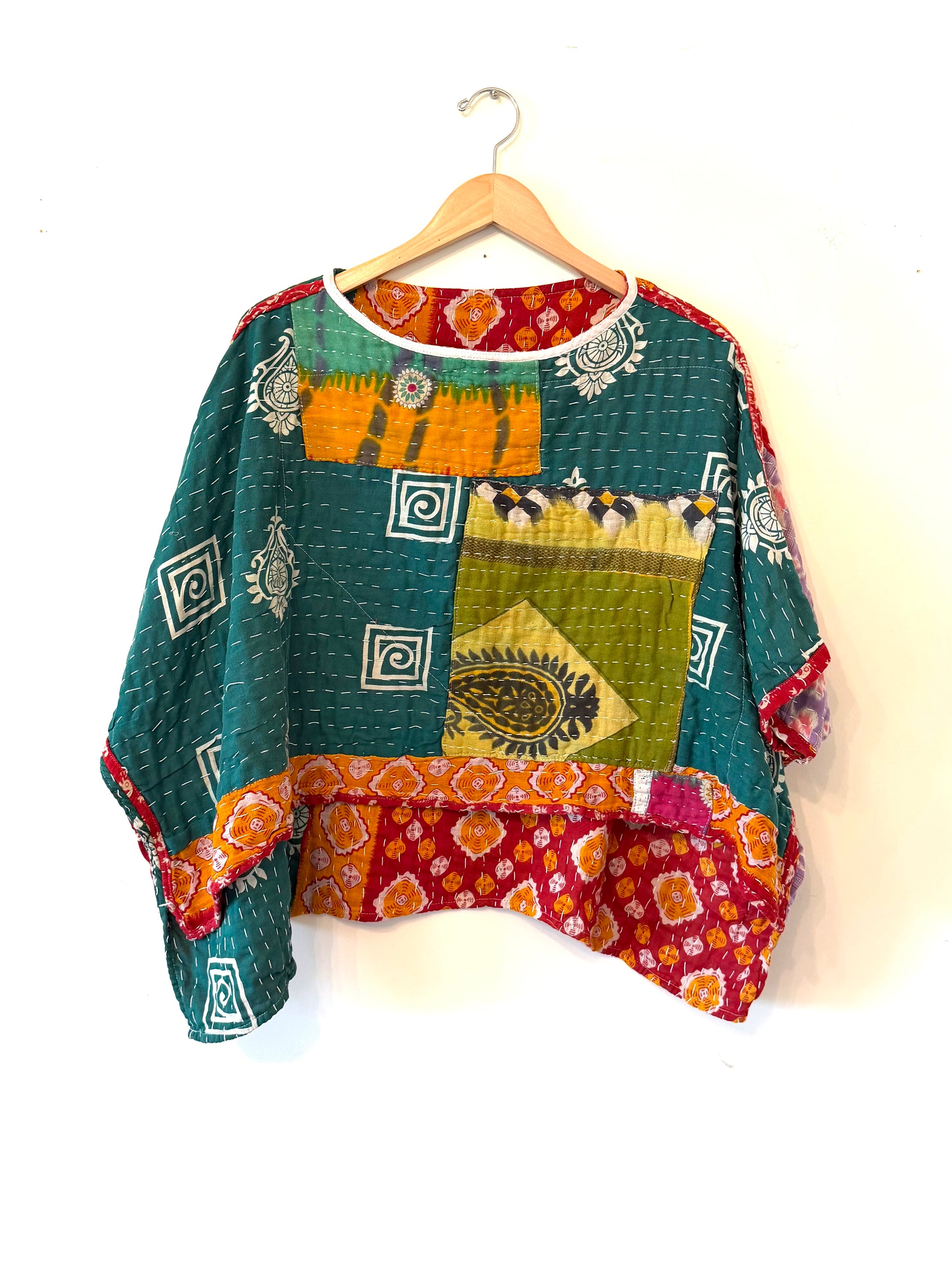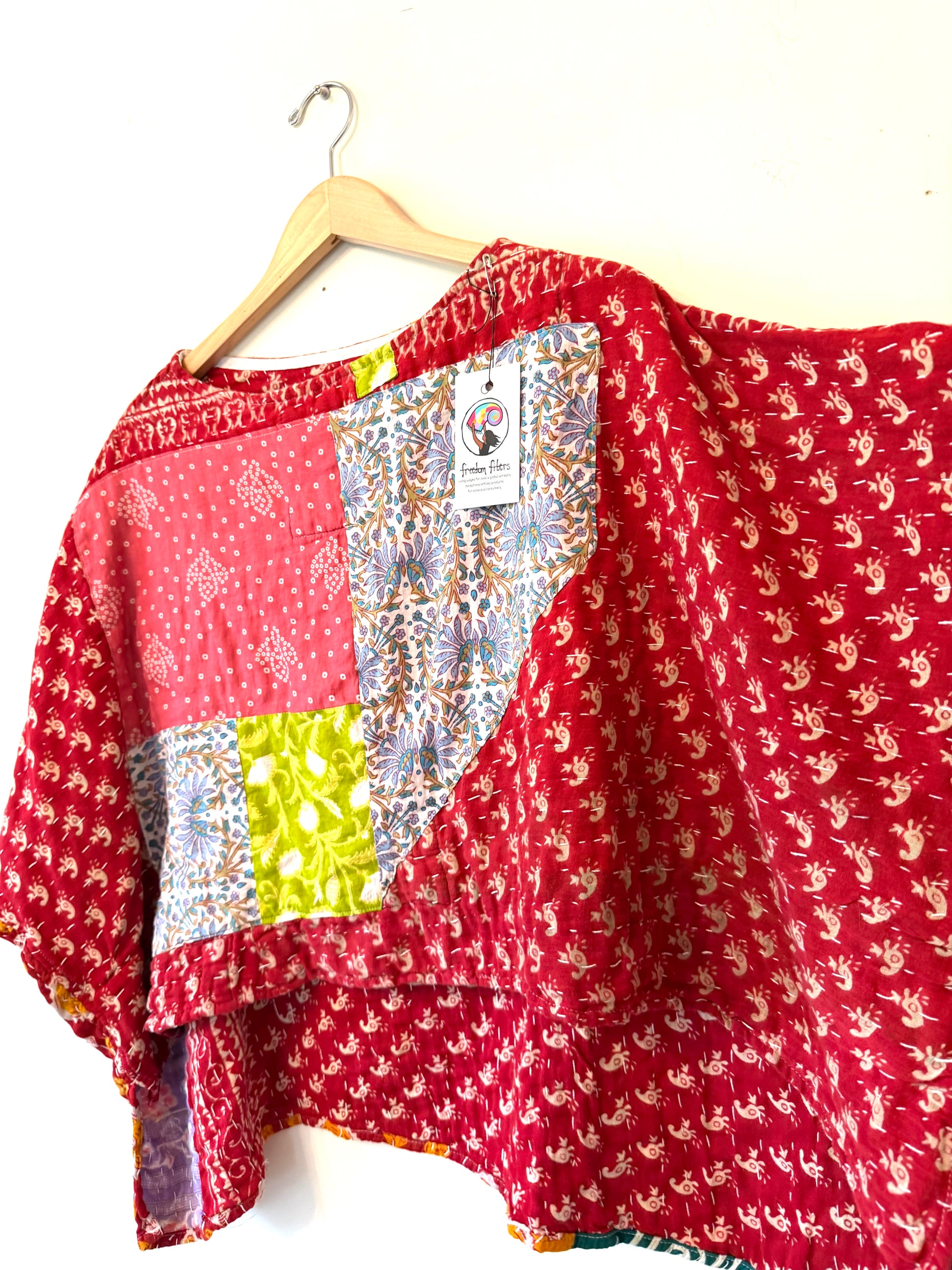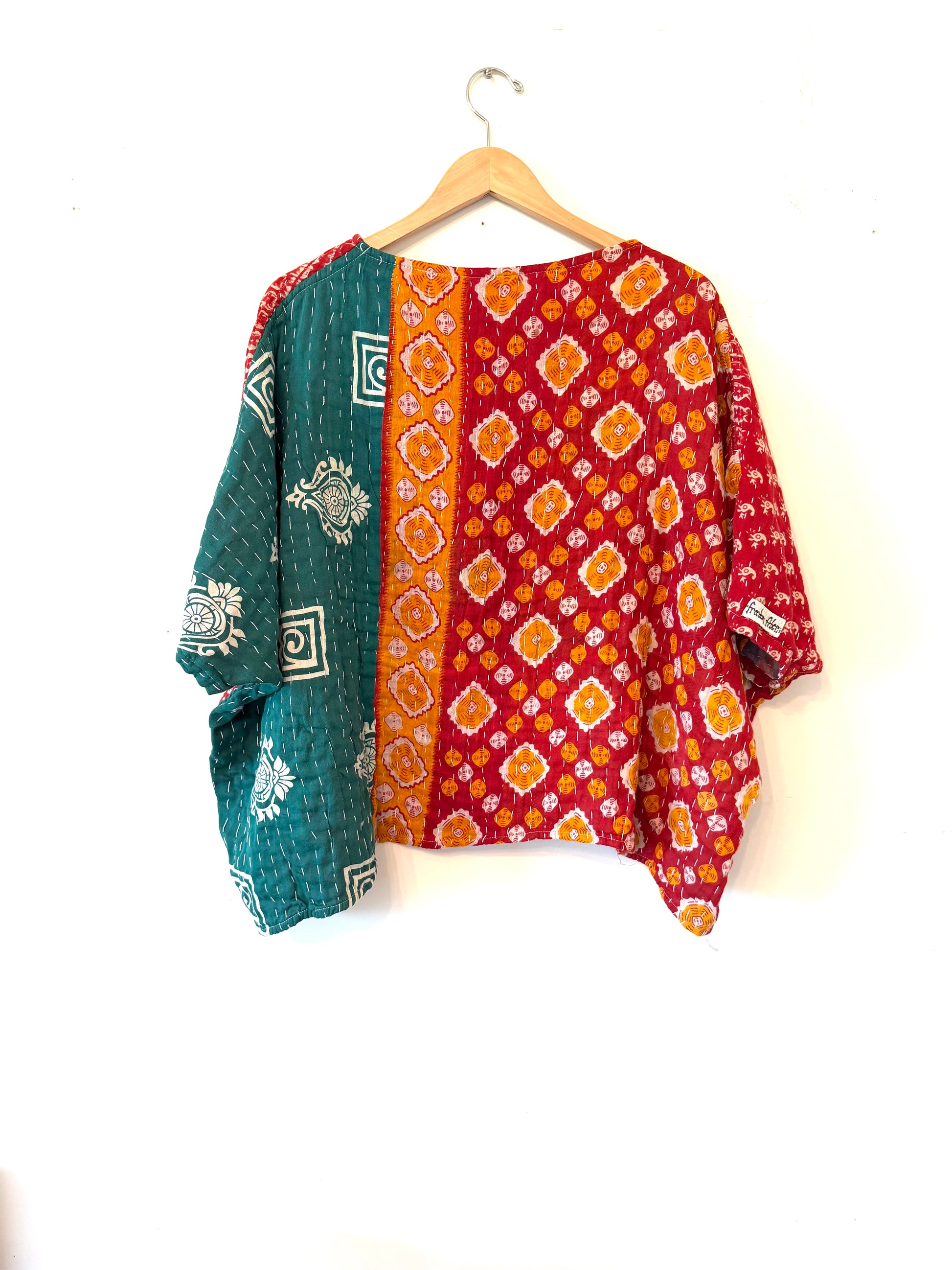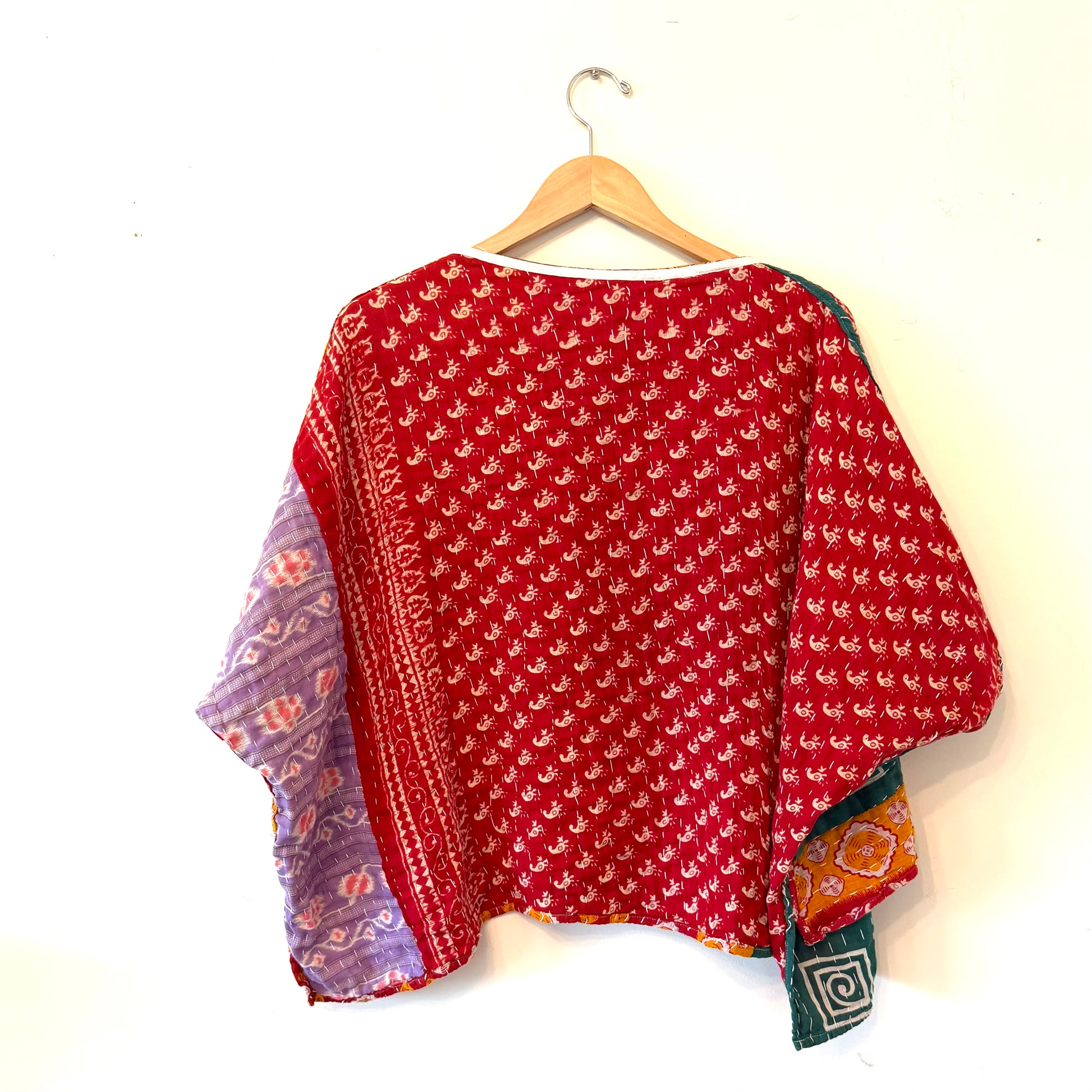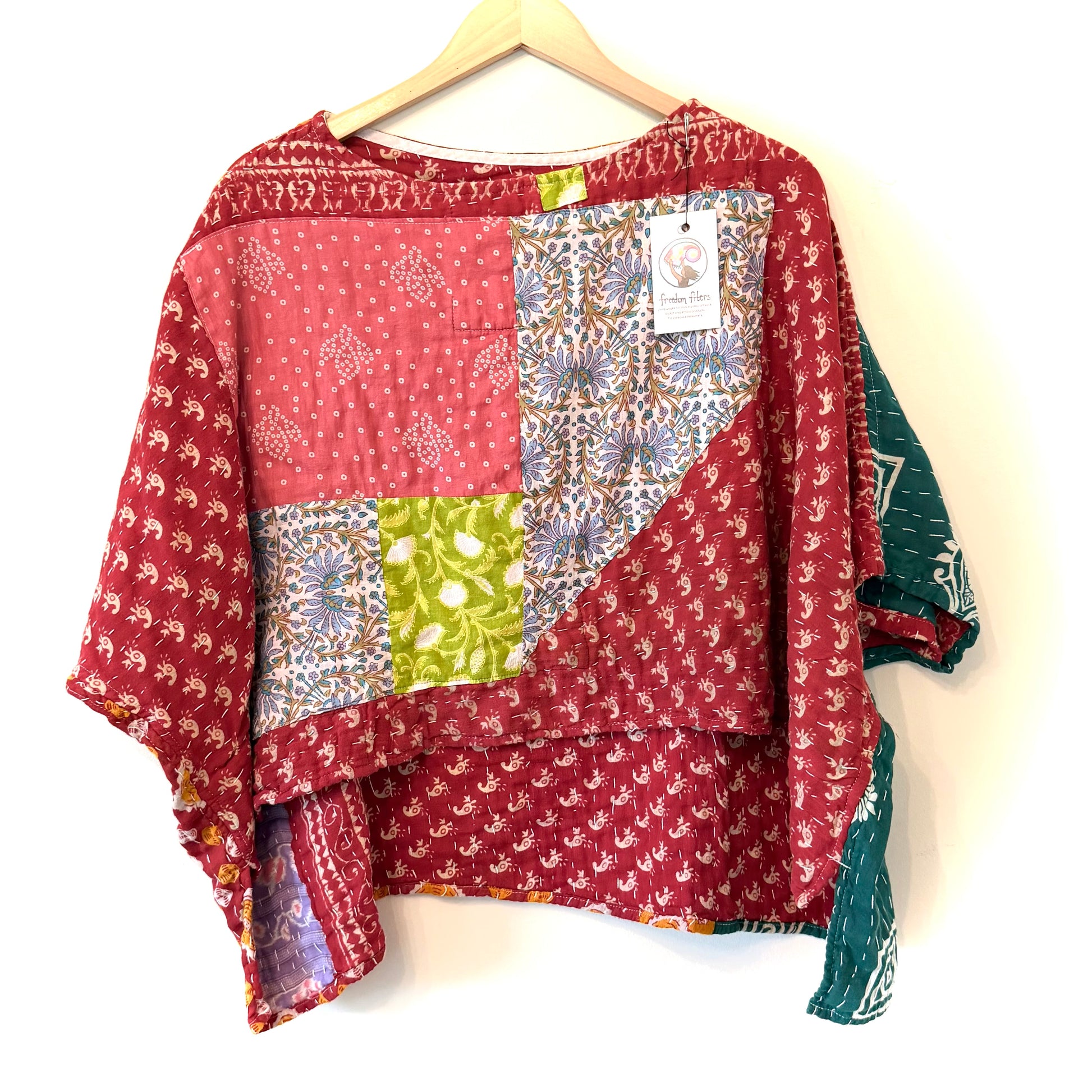 Made from 3 layers of repurposed cotton saris, our Ariana Shirts are One Of A Kind (OOAK). This is the exact garment you will receive.