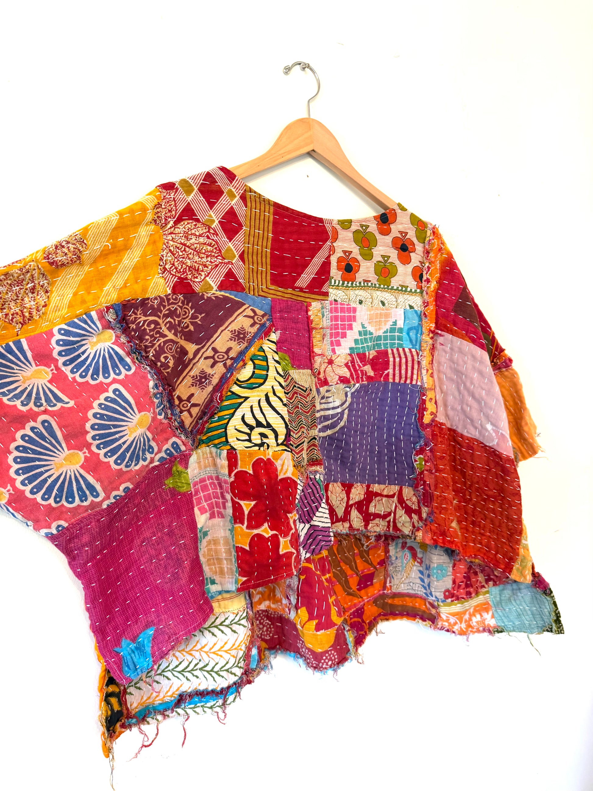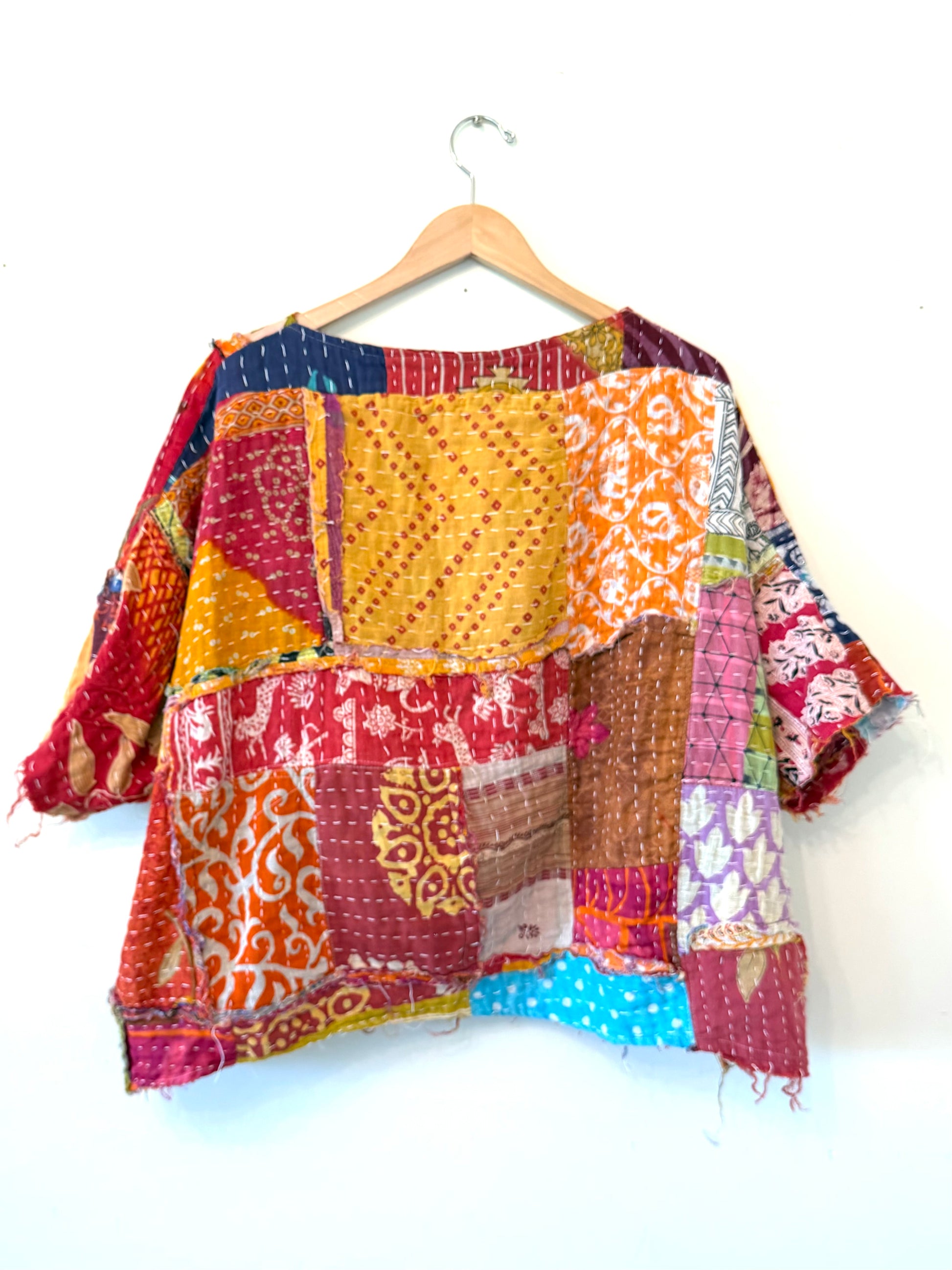 Made from 3 layers of repurposed cotton saris, our Ariana Shirts are One Of A Kind (OOAK). This is the exact garment you will receive.