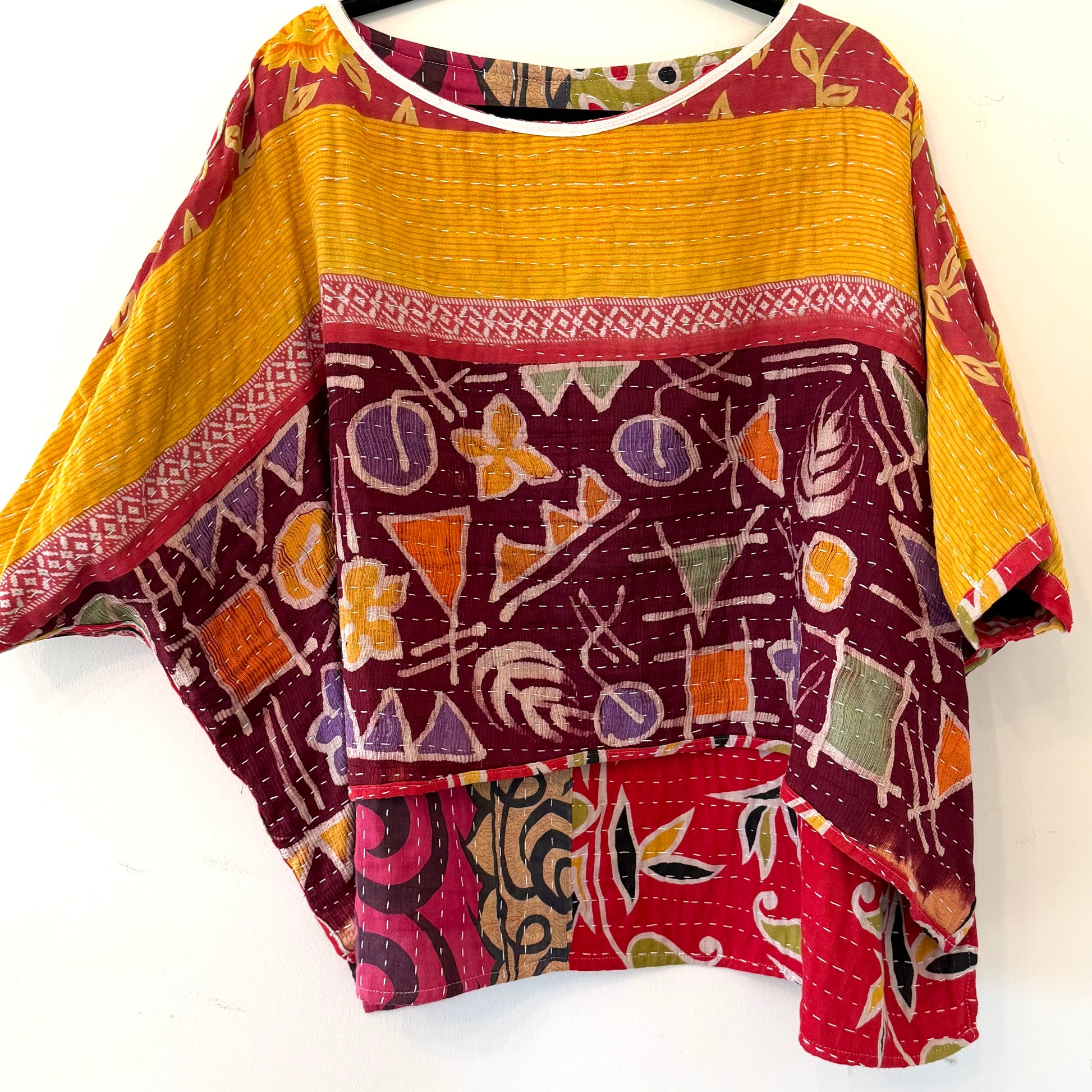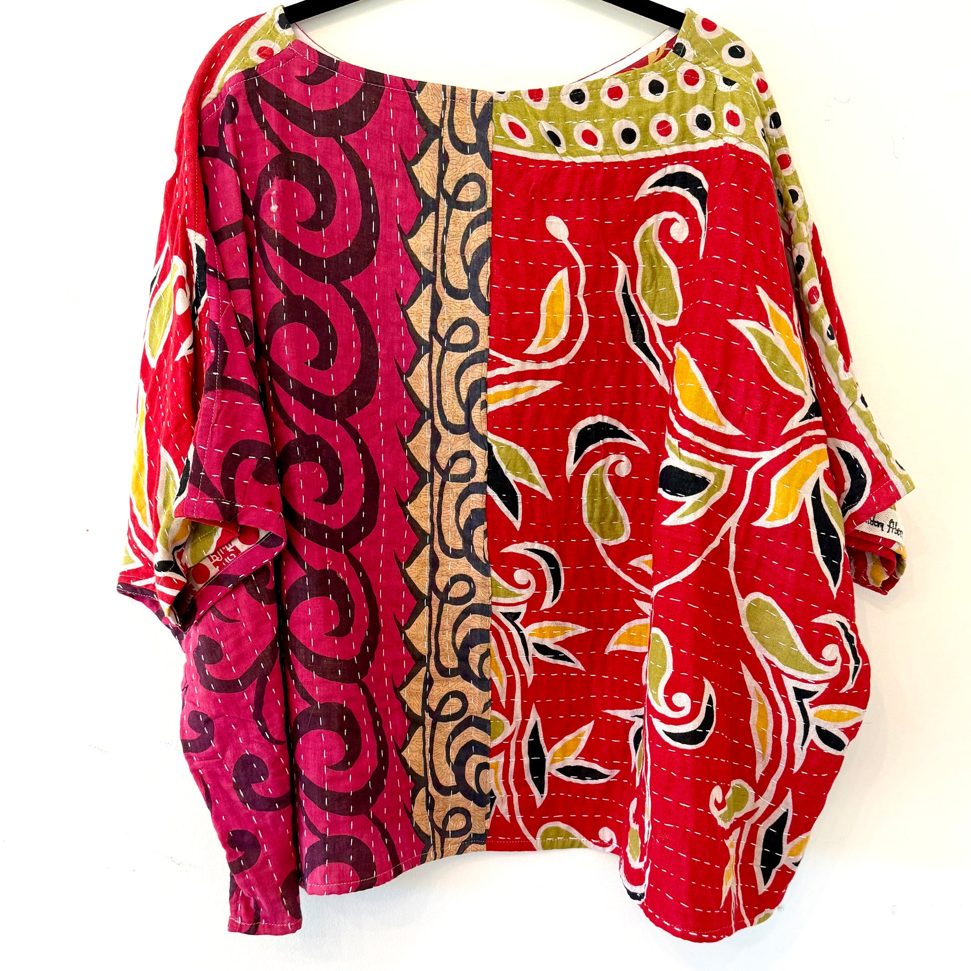 Made from 3 layers of repurposed cotton saris, our Ariana Shirts are One Of A Kind (OOAK). This is the exact garment you will receive.