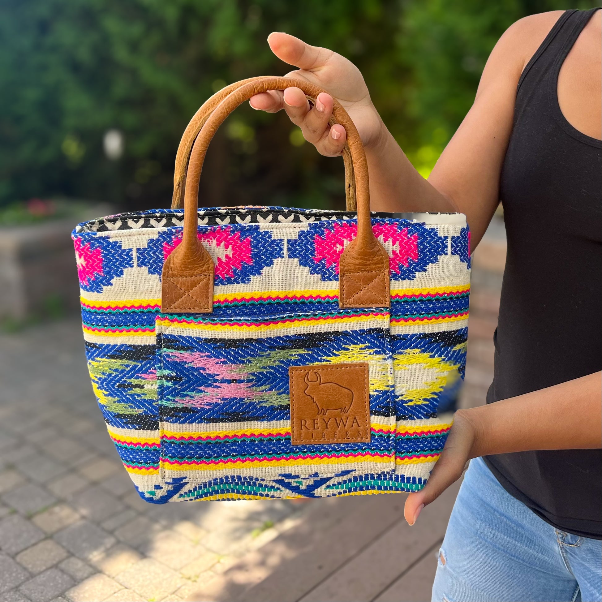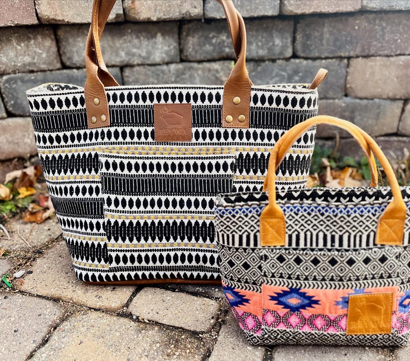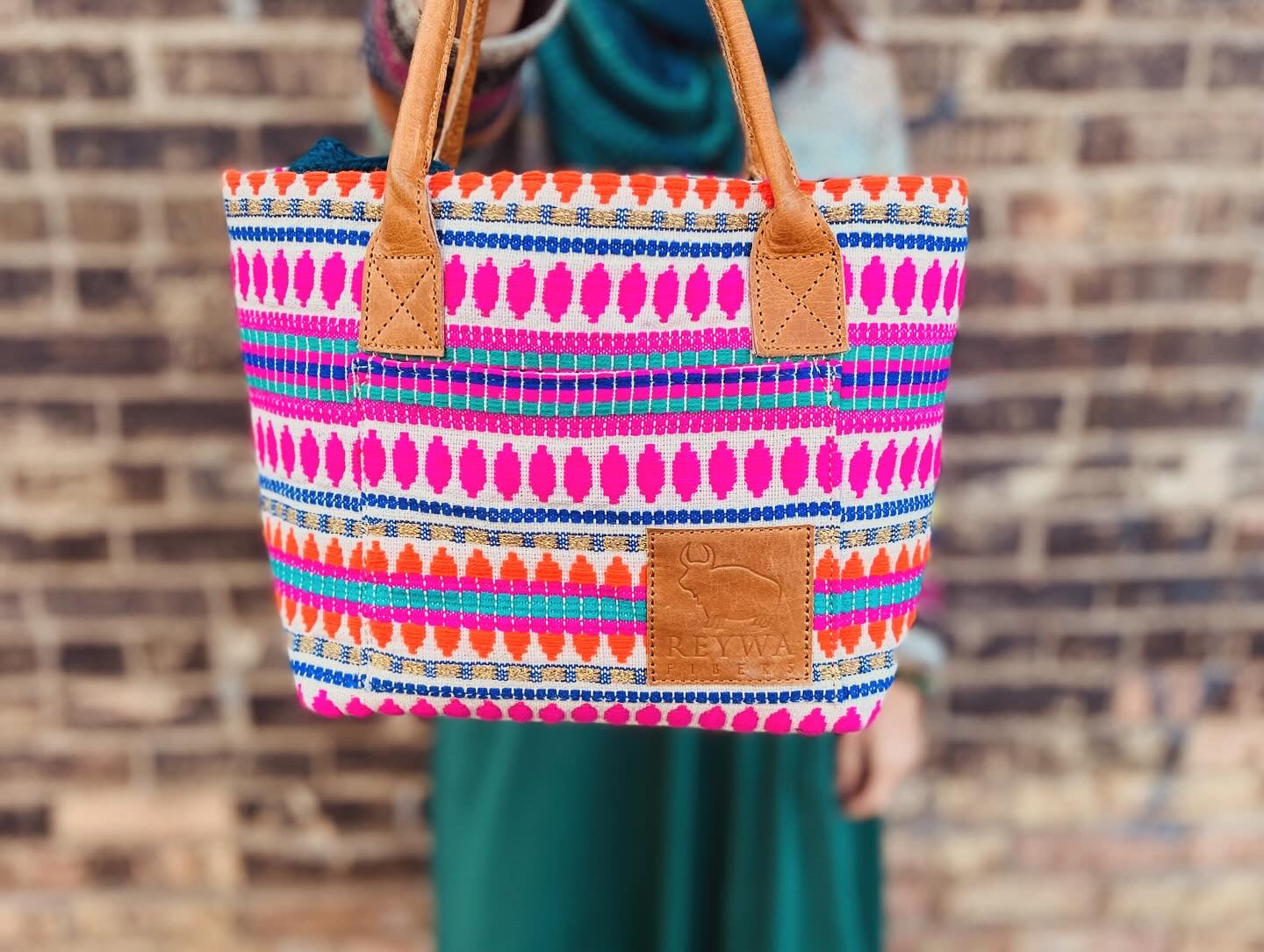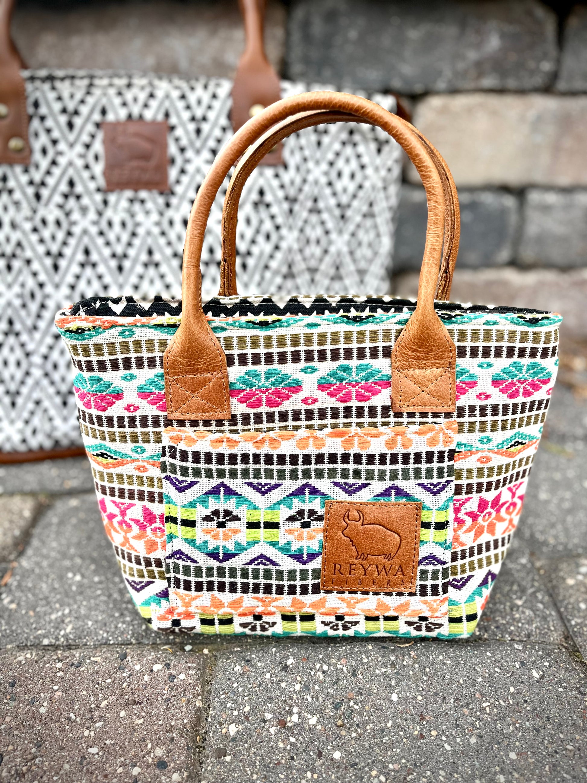 Reywa Fibers’ Classic Bucket Bag is the essential knitter’s project bag which easily accommodates small to medium sized projects. Each bag is lovingly made by a team of artisans in Northern India who earn a living wage while gaining vocational training. The buttery-soft, camel colored handles are made from water buffalo leather (along with all materials—except block printing ink—used in the creation of these bags) is repurposed from large factory surplus. This is a win-win, keeping costs lower for you, and saving usable fabrics from landfills.