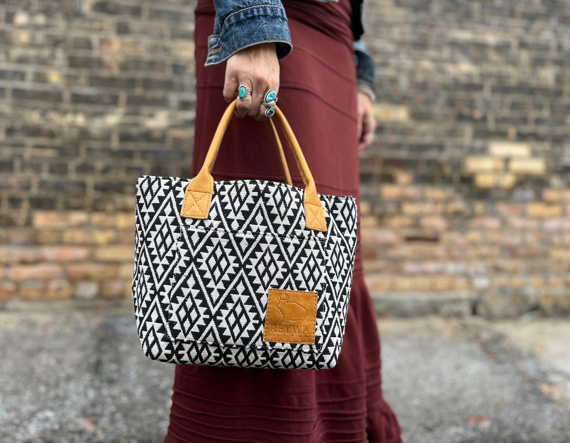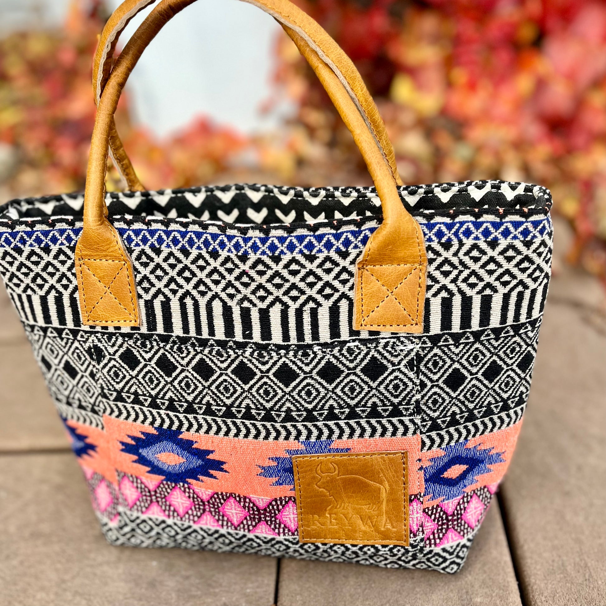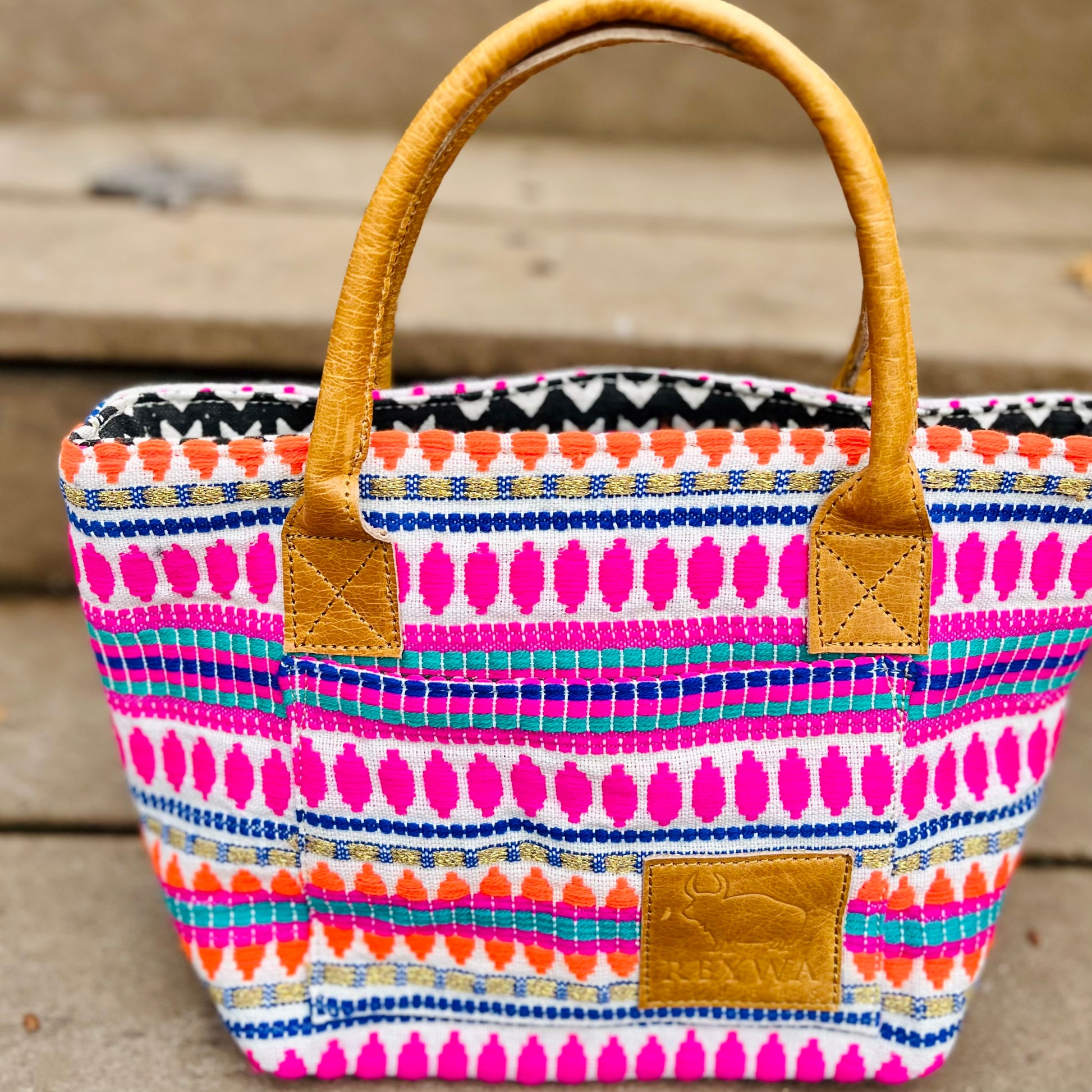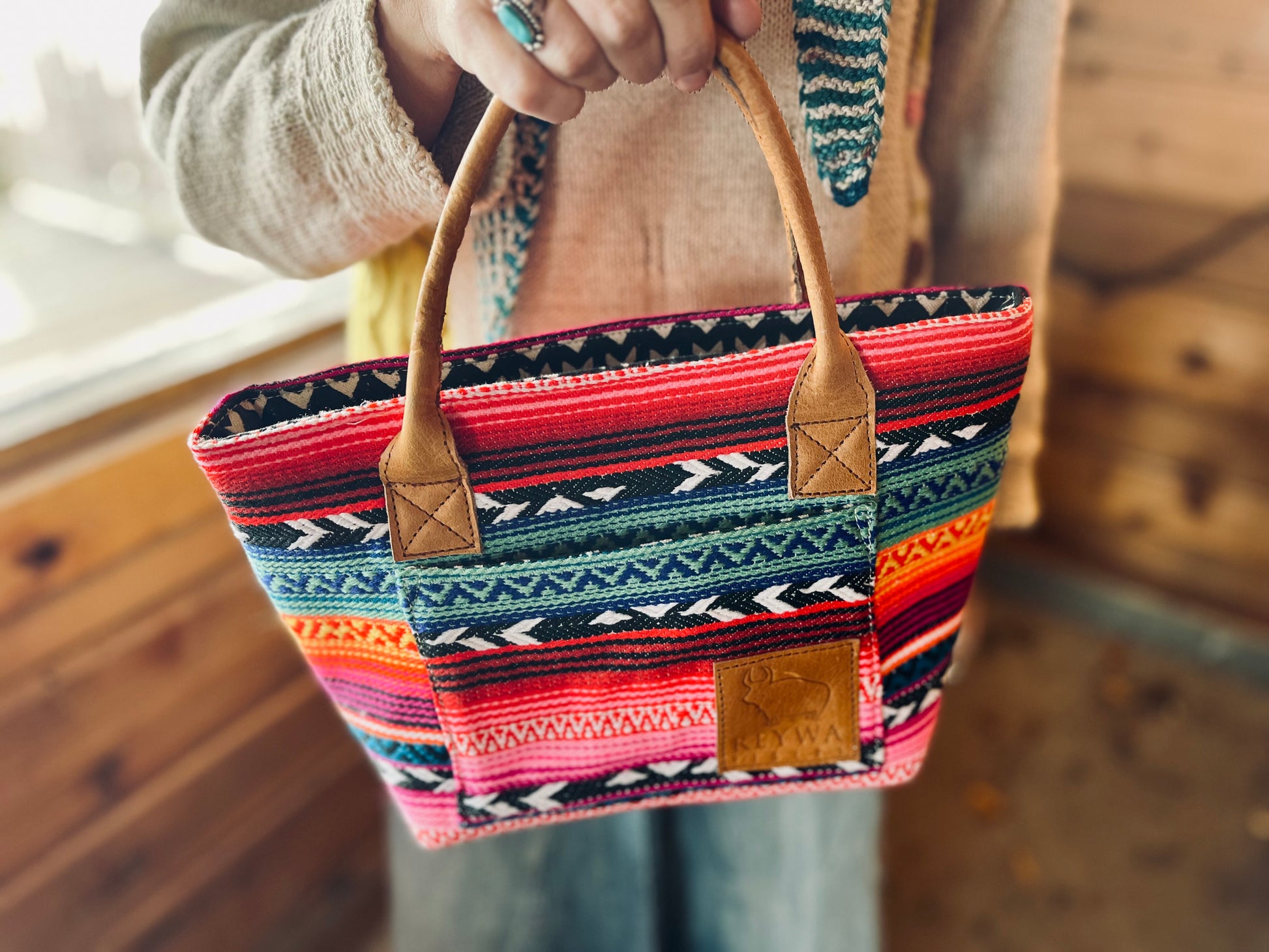 Reywa Fibers’ Classic Bucket Bag is the essential knitter’s project bag which easily accommodates small to medium sized projects. Each bag is lovingly made by a team of artisans in Northern India who earn a living wage while gaining vocational training. The buttery-soft, camel colored handles are made from water buffalo leather (along with all materials—except block printing ink—used in the creation of these bags) is repurposed from large factory surplus. This is a win-win, keeping costs lower for you, and saving usable fabrics from landfills.