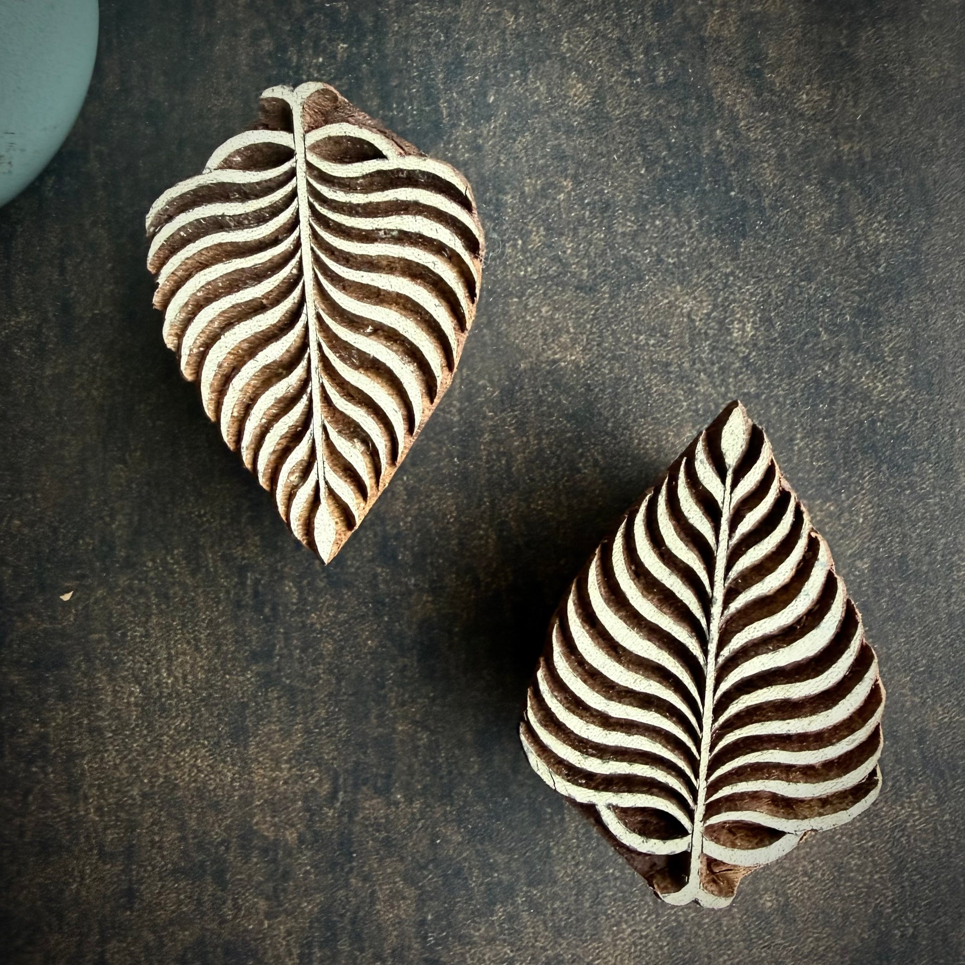 It takes Pappu a full day to hand carve this fern stamp. He told us his father was a block stamp carver and began teaching Pappu at a young age. As a freelance artisan, Pappu is so thankful when Freedom Fibers places an order. Your purchase directly impacts the artisan and his family.