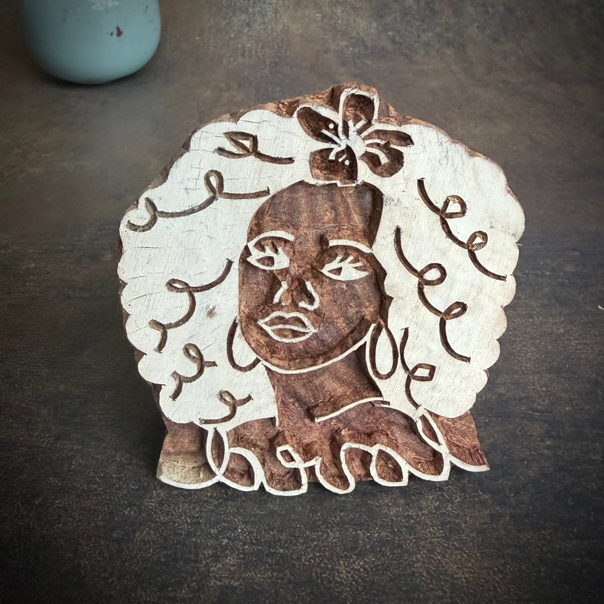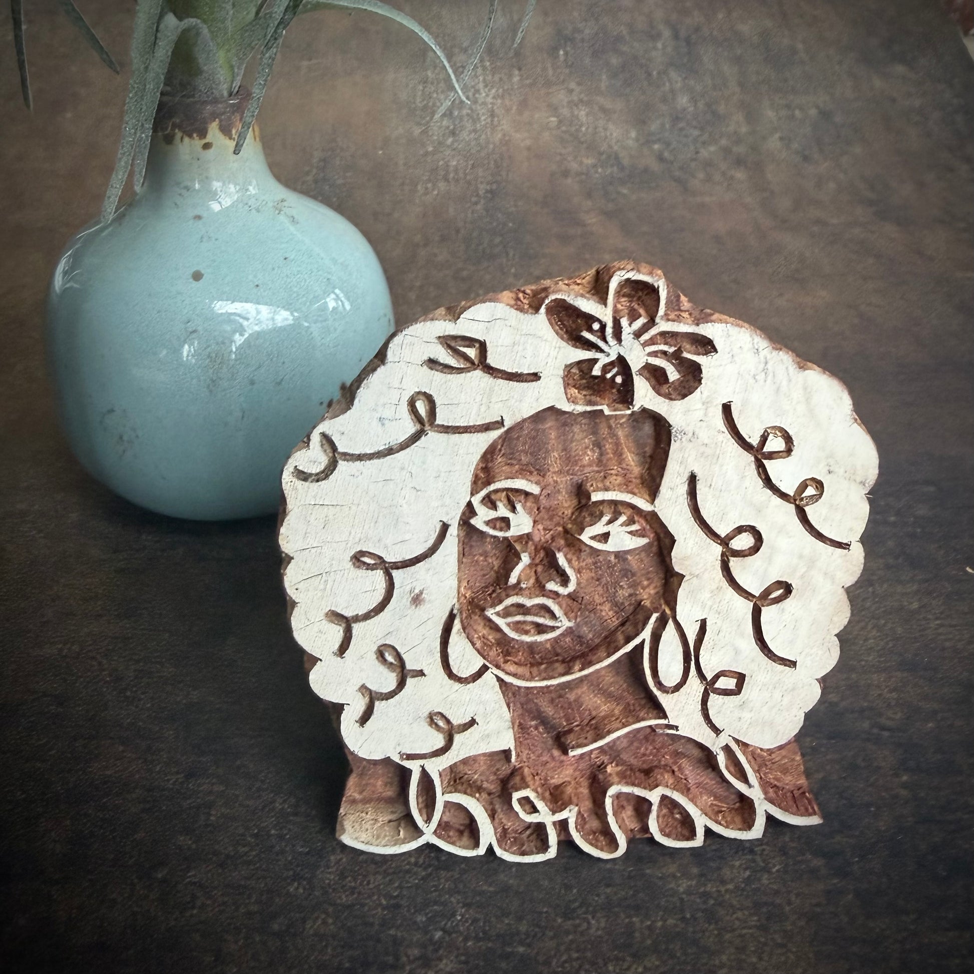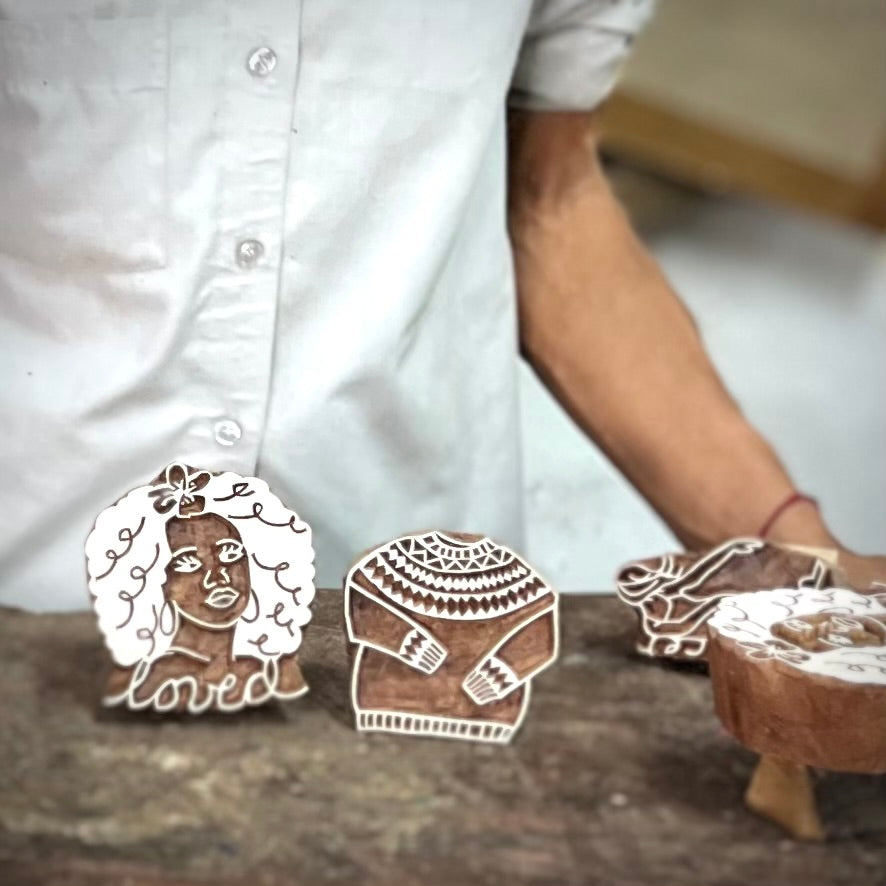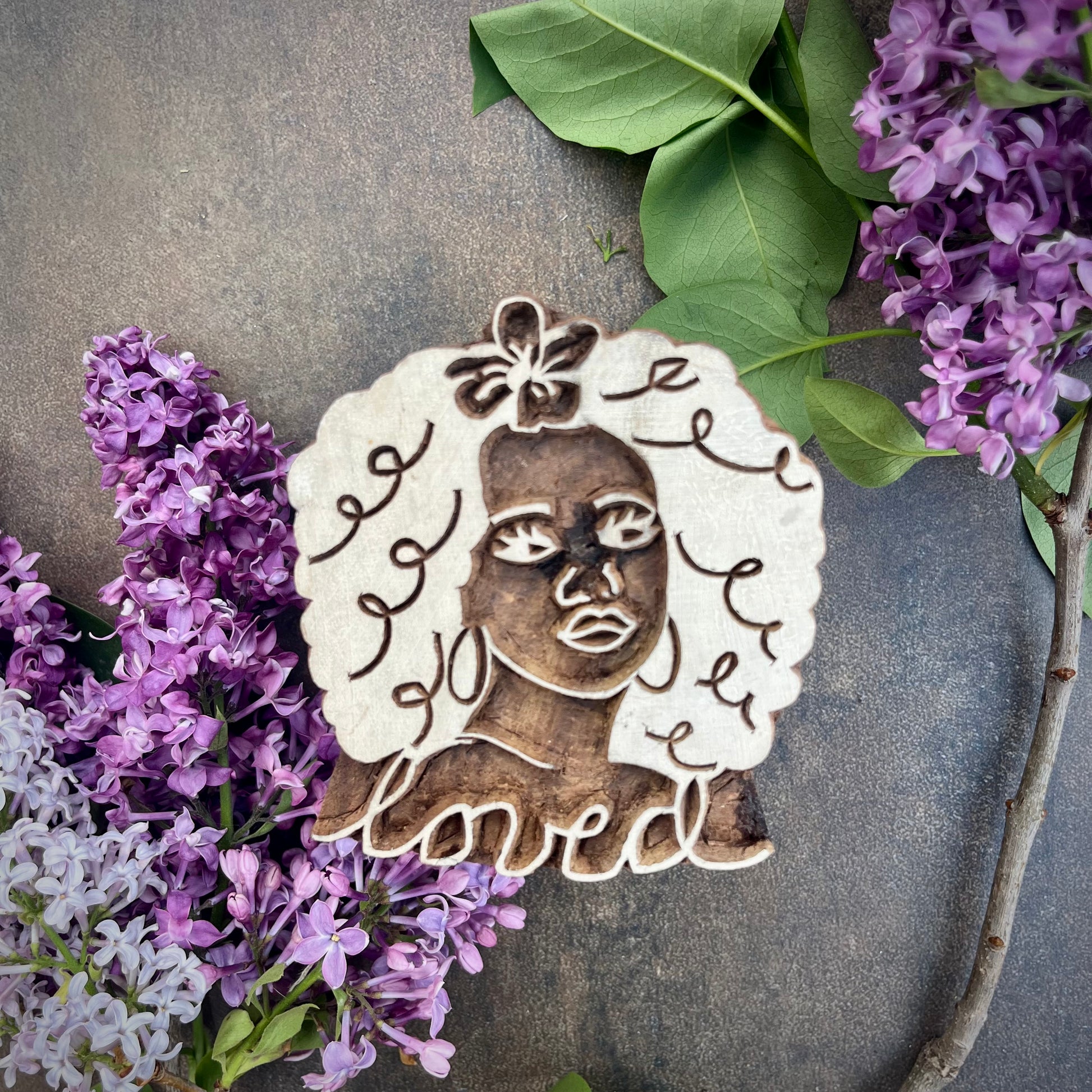 She is loved. You are loved. Share the message by block printing the image on note cards, homemade gift wrap, your favorite canvas tote or tshirt. We also like to display her on our living room shelf.