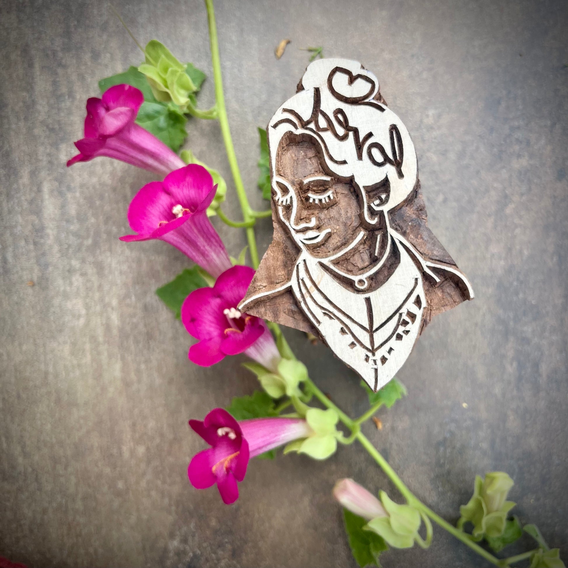 Hand drawn by Meli. Hand carved by Pappu in 16 hours. Thank you for supporting traditional cultural arts in Northern India.