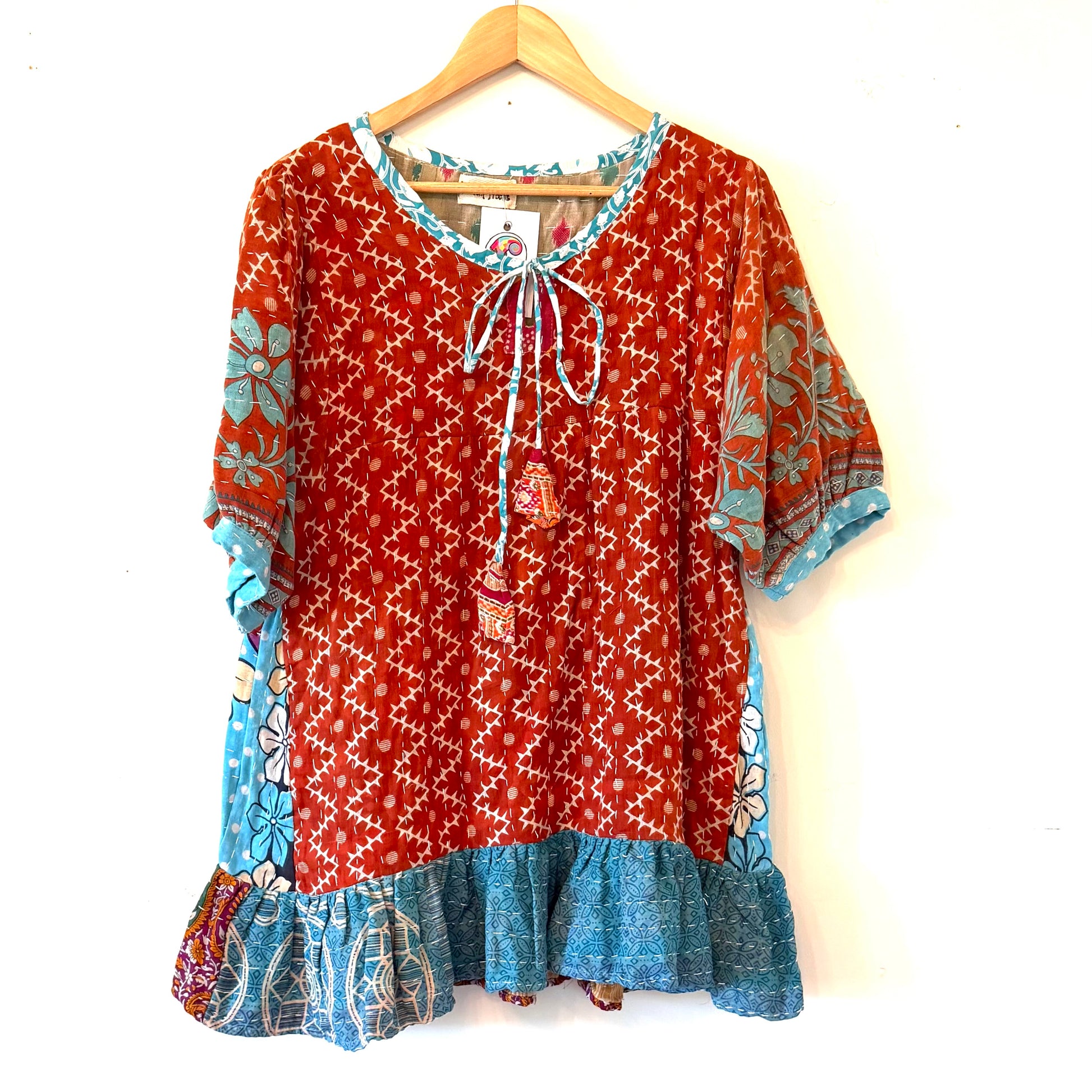body made from 100% repurposed cotton saris (exclusive of trim)