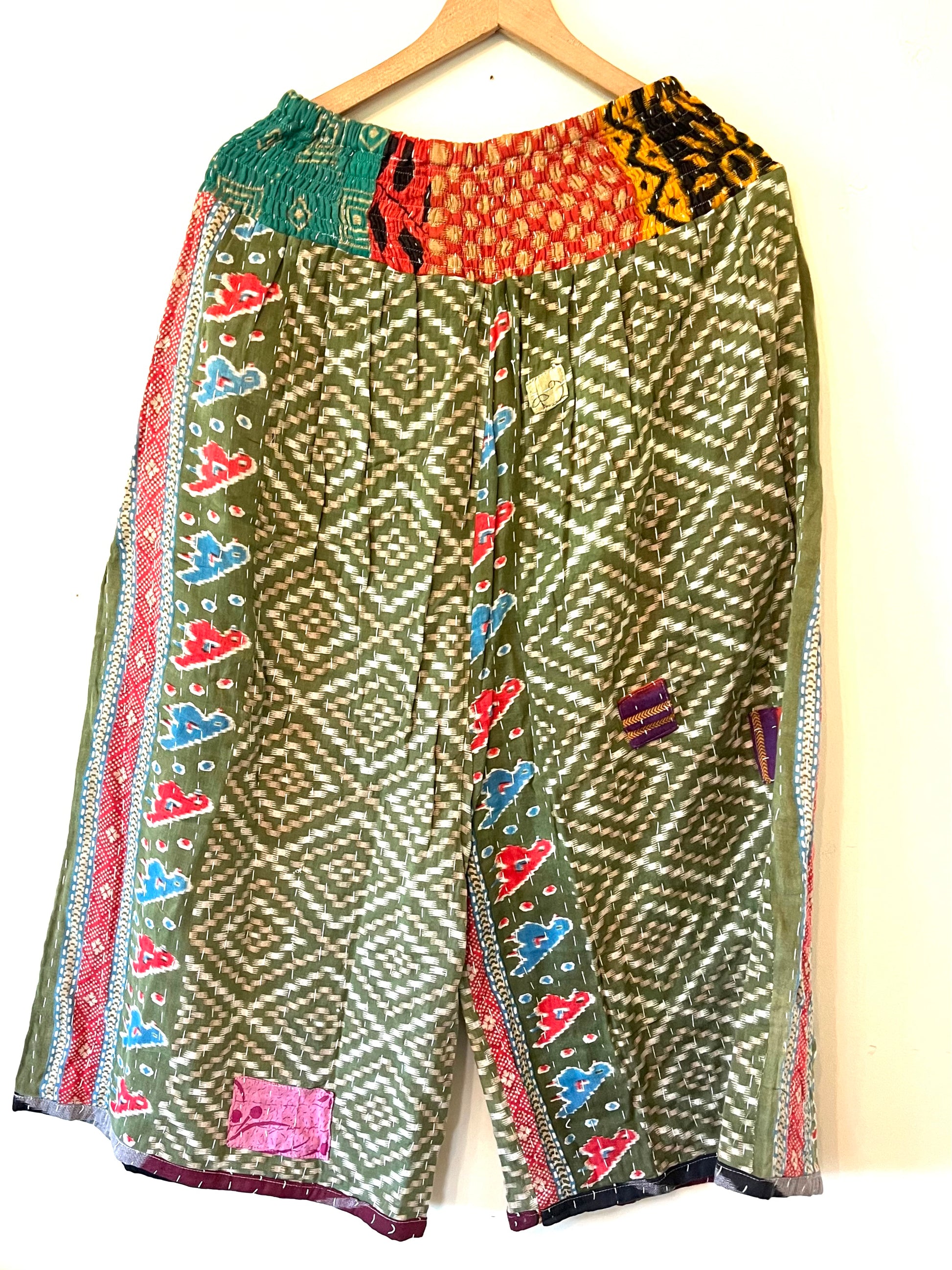 These pants-that-look-like-a-skirt are named after and designed by our lead sewist, Radha. Large pockets and a stretchy waistband make it easy to look amazing while remaining comfortable. Made from repurposed saris at the Freedom Fibers workshop in Northern India, each pair is completely unique and will never be reproduced. Radha Pants are available in 2 sizes (Size A & Size B)and 3 lengths (Ankle, Regular, &Tall). Size A fits XS-S and Size B fits most! Please visit our size fit gallery see how our sizes look on different body types. This is the EXACT item you will receive.