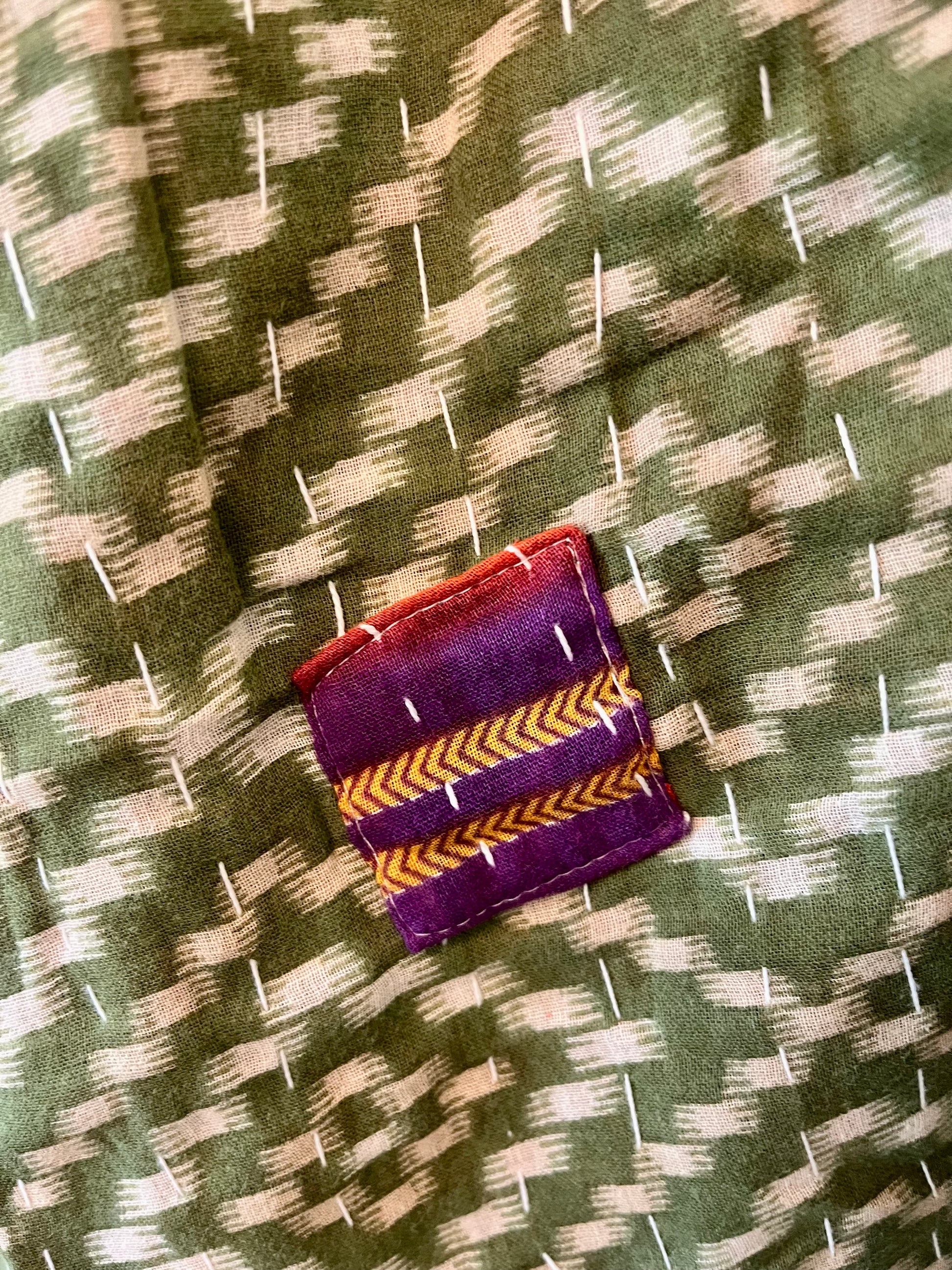 sustainably made from 100% repurposed cotton saris (exclusive of pockets)