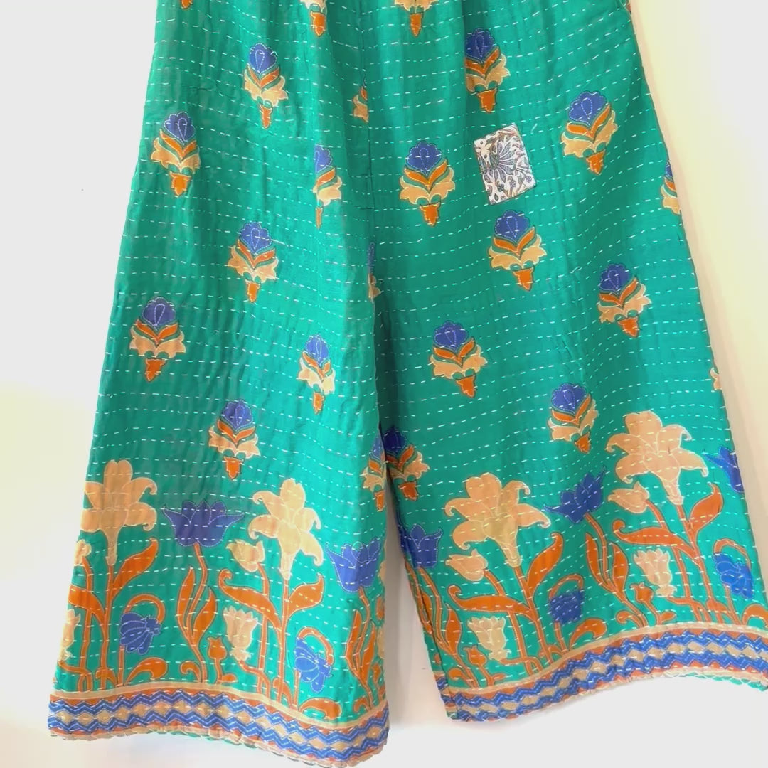 These pants-that-look-like-a-skirt are named after and designed by our lead sewist, Radha. Large pockets and a stretchy waistband make it easy to look amazing while remaining comfortable. Made from repurposed saris at the Freedom Fibers workshop in Northern India, each pair is completely unique and will never be reproduced. Radha Pants are available in 2 sizes (Size A & Size B)and 3 lengths (Ankle, Regular, & Tall). Size A fits XS-S and Size B fits most! Please visit our size fit gallery see how our sizes look on different body types. This is the EXACT item you will receive.