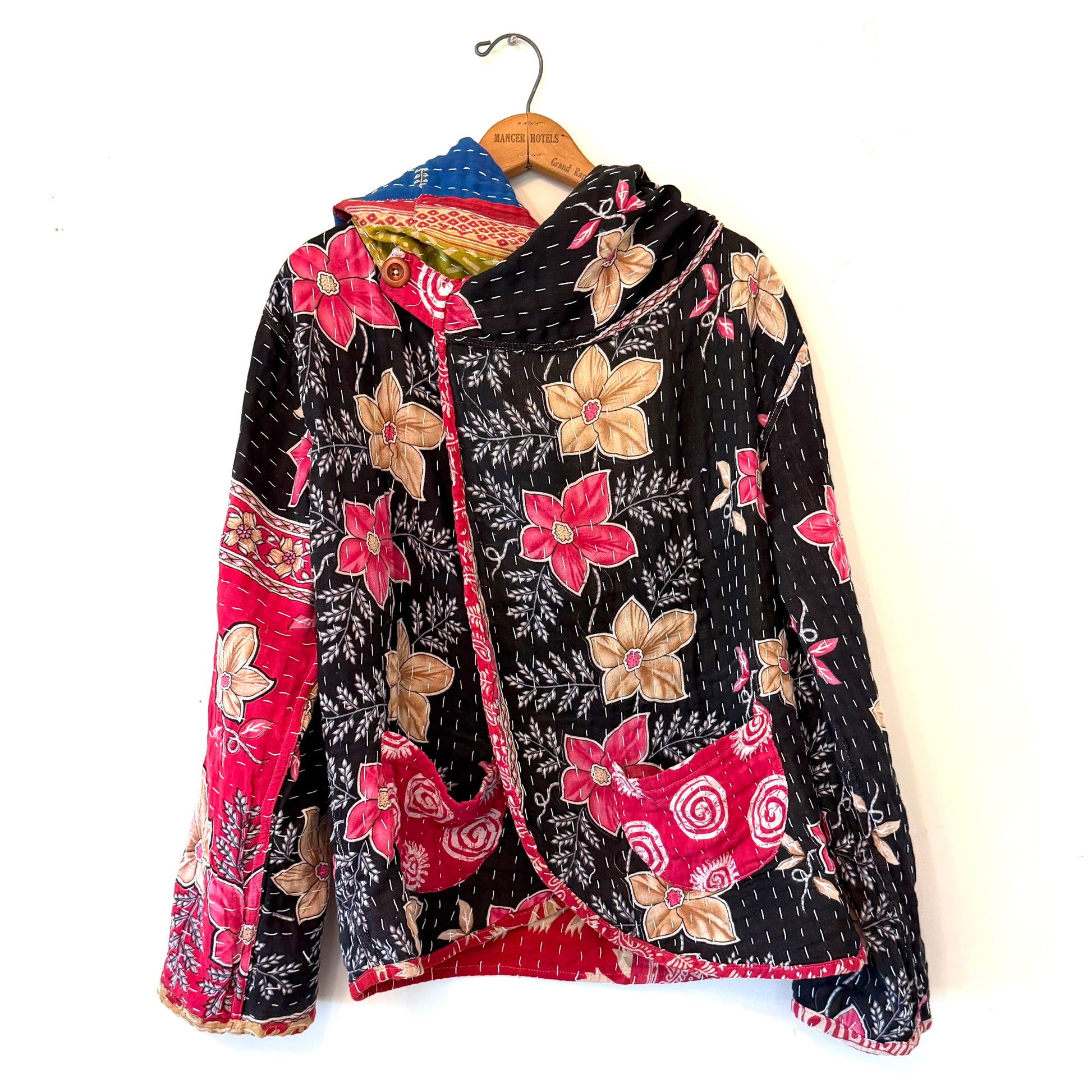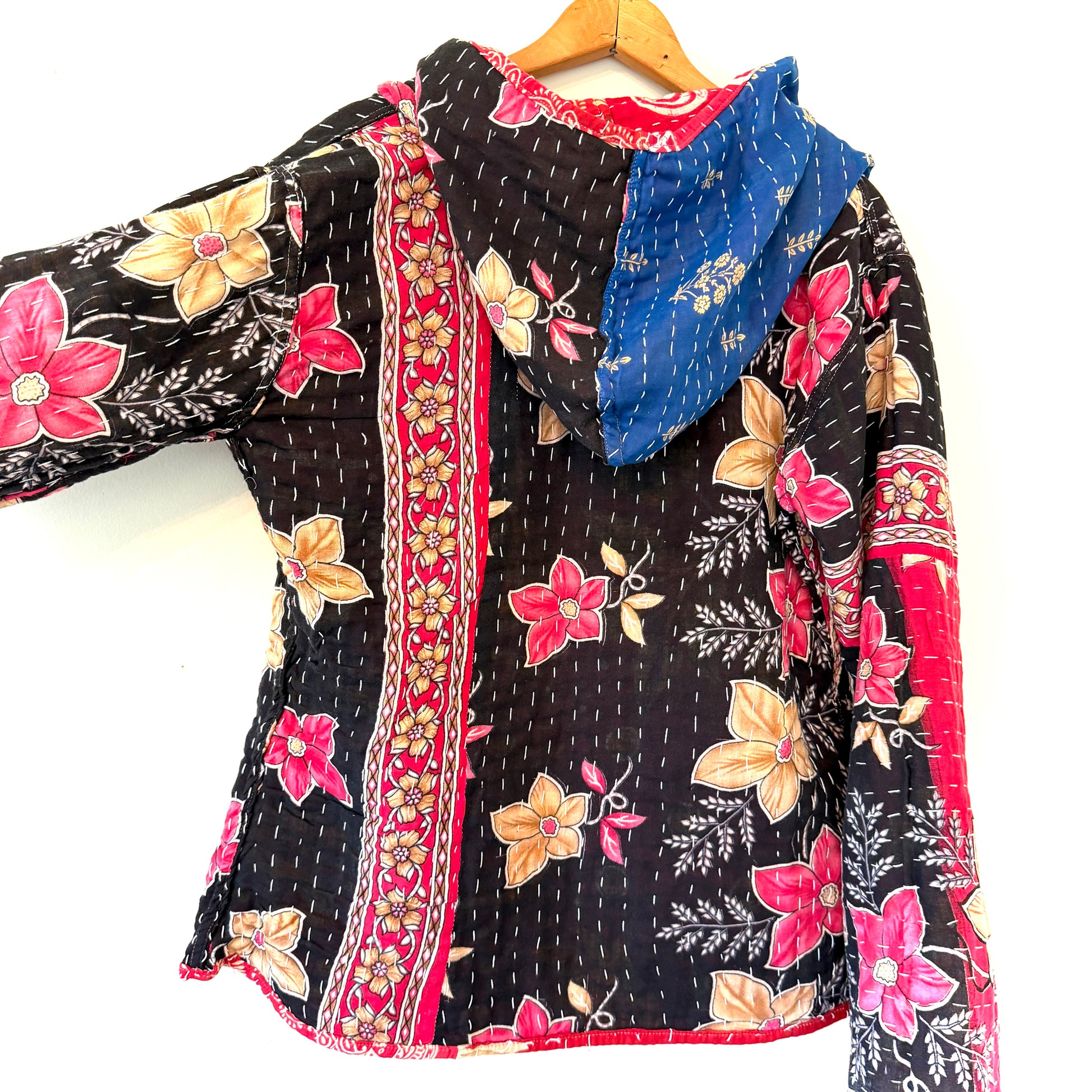 The excessively cool, earthy-beautiful Topi Jacket is a casual show-stopper! We love the big hood, relaxed style, and comfortable softness. And as always with our kantha garments, each jacket is completely unique and One Of A Kind. This is the exact jacket you will receive.