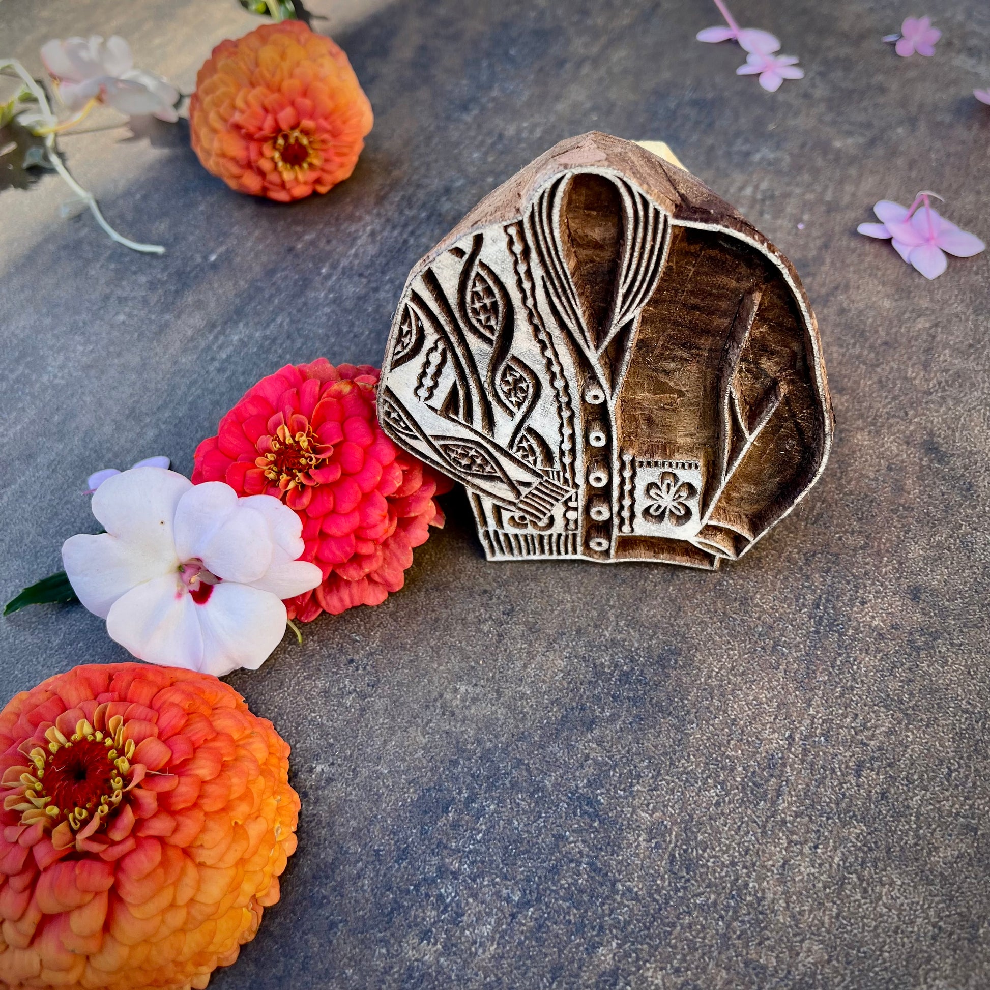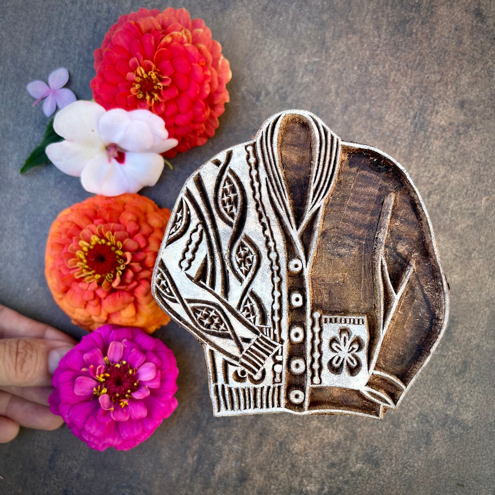 The perfect gift for yourself or your favorite sweater knitter/crocheter! Use this hand-carved artwork for home decor or for block printing on fabric or paper, on leather, soaps, ceramics, or cookies! The possibilities are endless. Hand drawn in Minnesota. Hand carved by our artisan partner in Delhi.