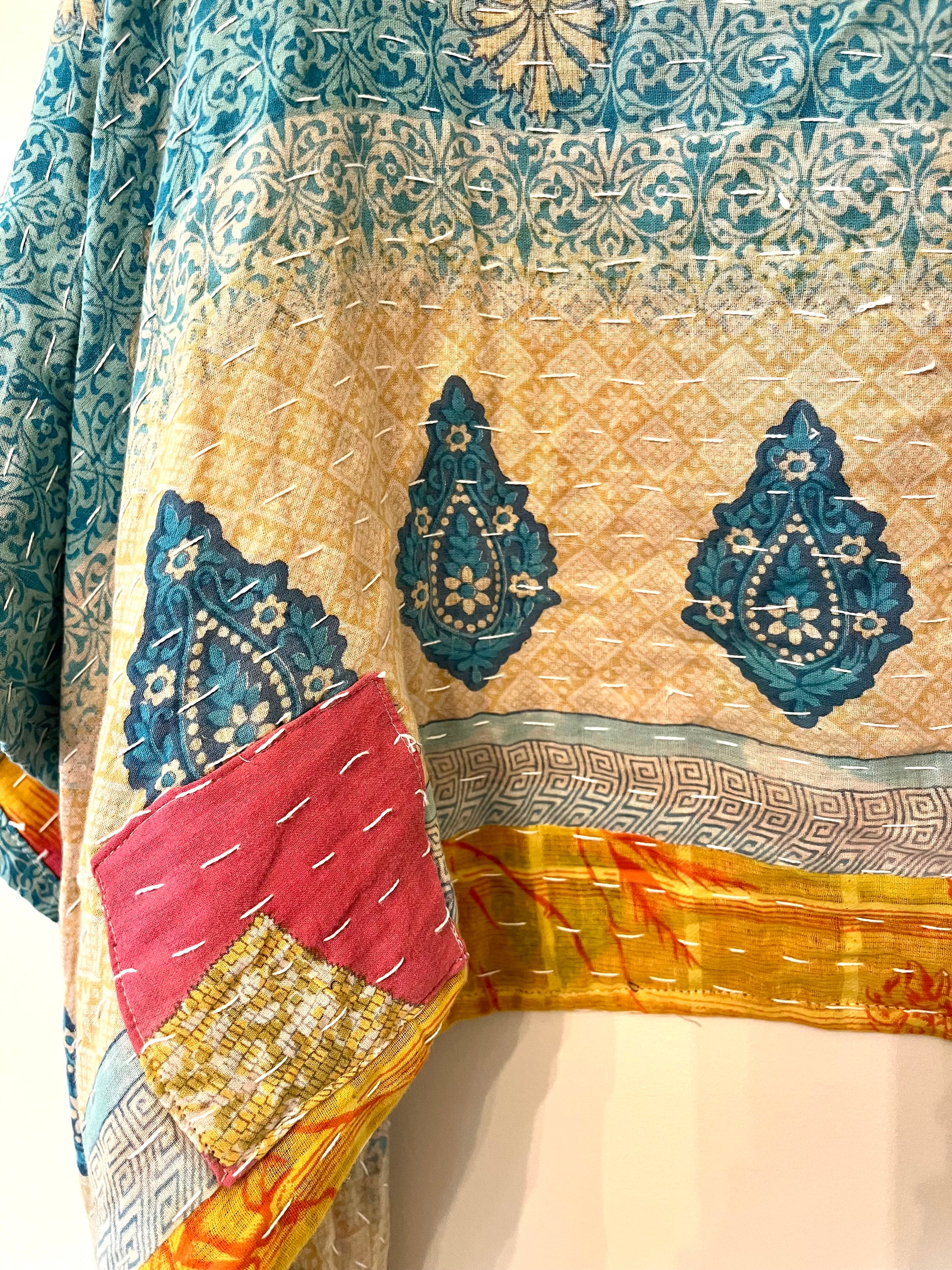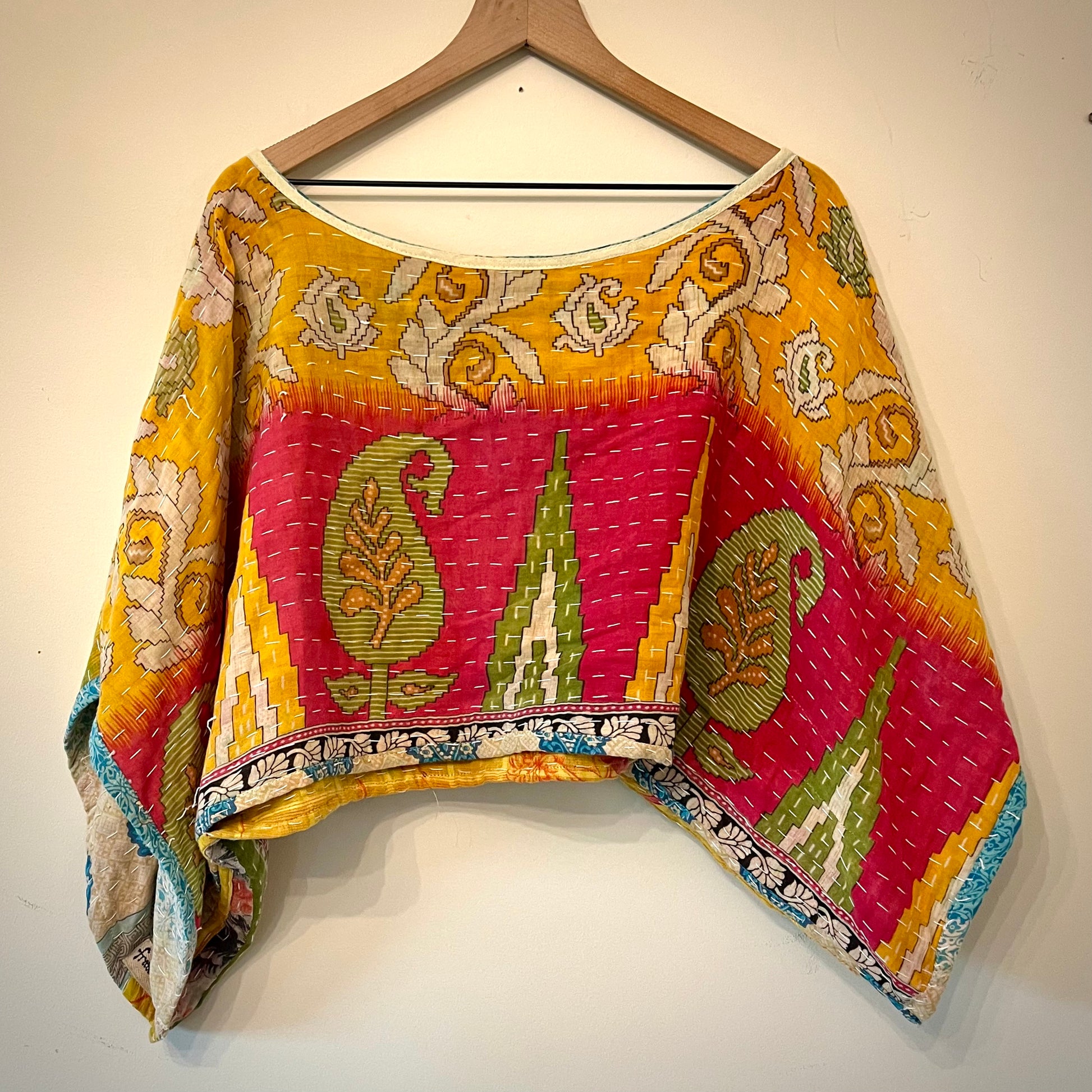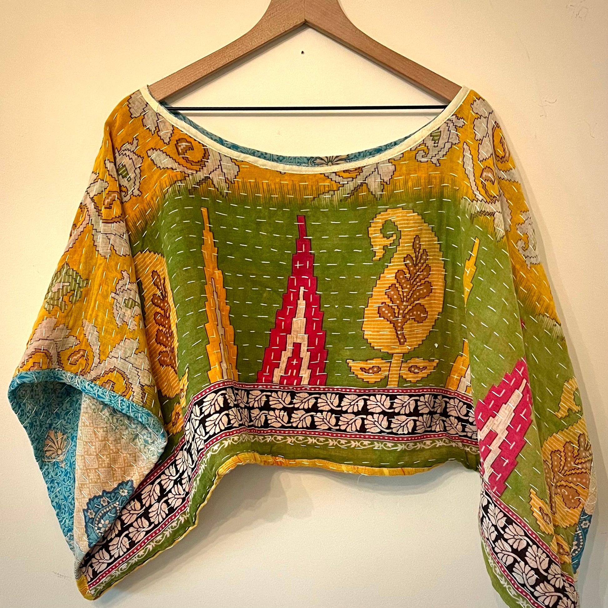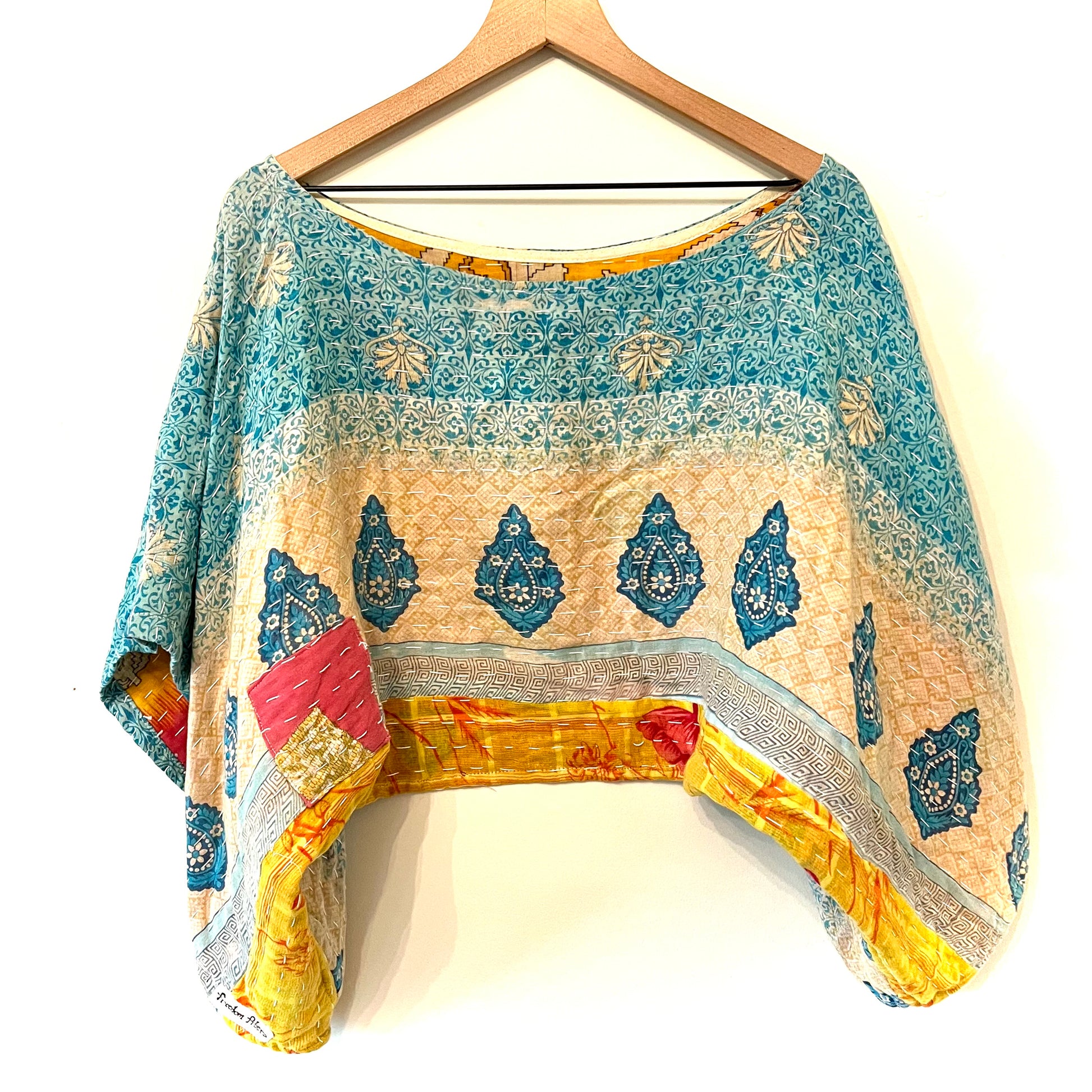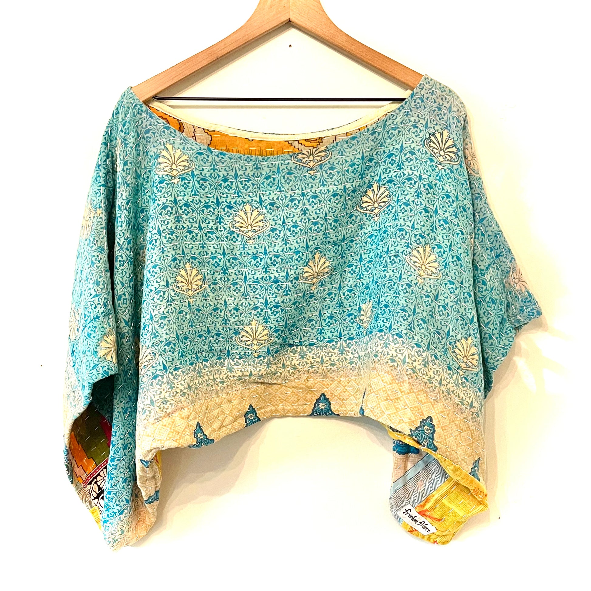 The Meli Shrug can be worn four ways (either side in front, either side out); calling it reversible is an understatement! The short length, wide neckline, and wide sleeves give it an easy, relaxed, and a little bit sexy look which looks great on its own, over dresses, over fitted long sleeved tops, and our favorite—with high waisted pants. Each shrug is One of A Kind. Different fabric patterns/colors are used to create each style which means that every piece of clothing that you put in your closet will be uniquely YOU and uniquely YOURS. Our sizing is also unique! We have 2 sizes in the Meli Shrug (Size A & Size B). Some people can wear both sizes!