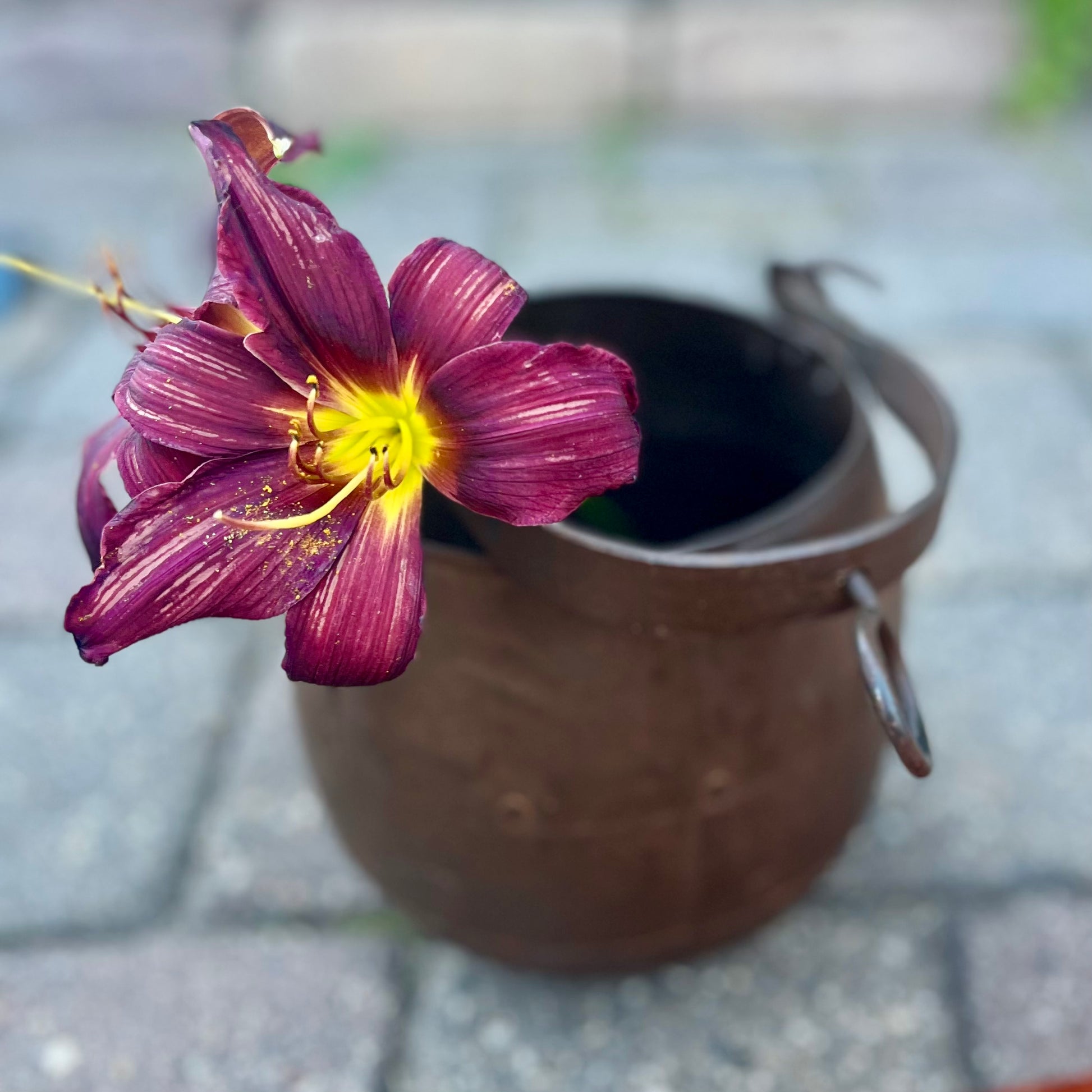 Crafted from repurposed World War II era metal, these vintage pots from India are a great gift for any lover-of-all-things-vintage. They work great for home decor, as a planter, or as a yarn bowl for the vintage-loving-knitter/crocheter!