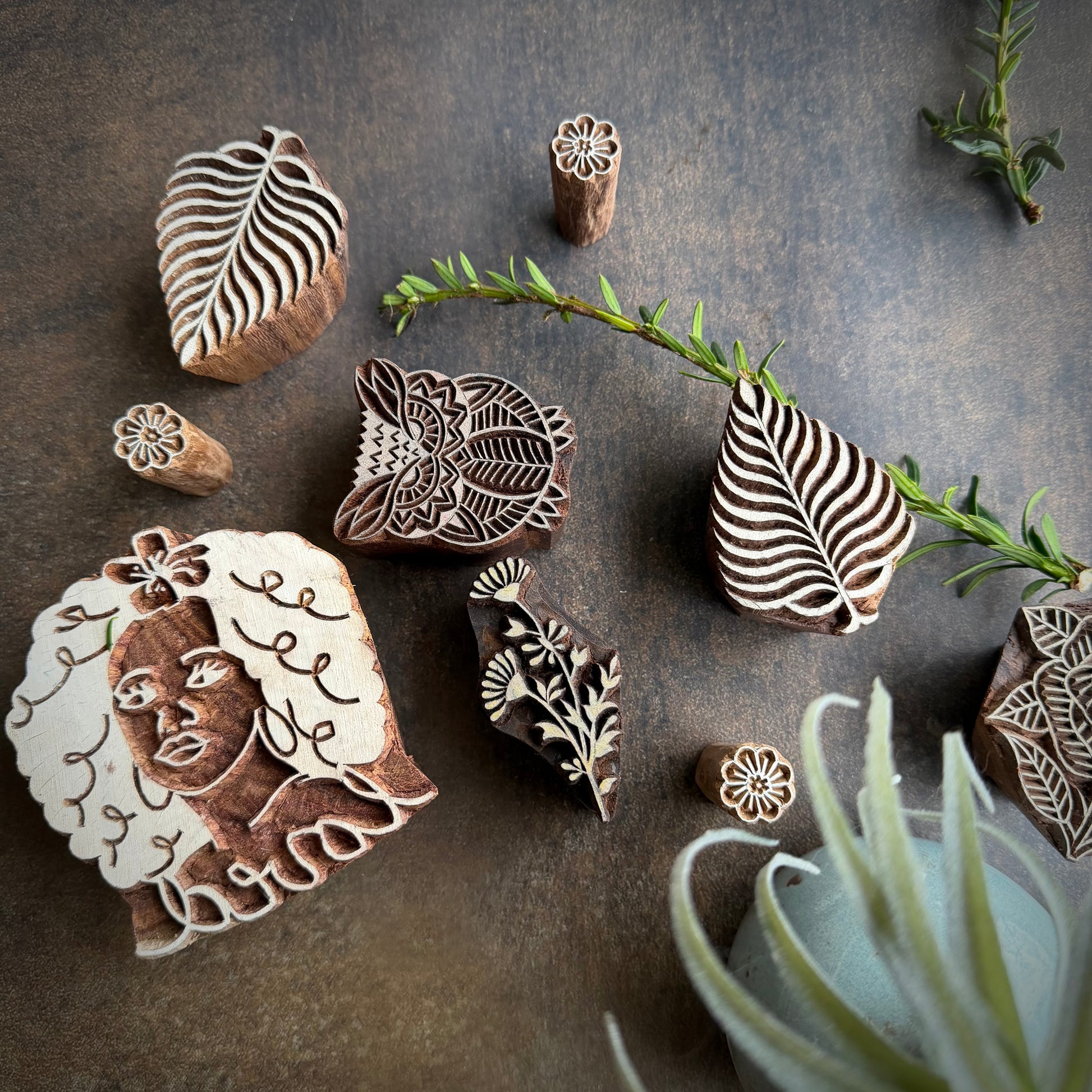 These hand-carved block printing stamps are works of art by our artisan partner, Pappu. They can be used on fabric, paper, ceramics, home made soap, on sugar cookies, or even as a paper weight or for home decor.