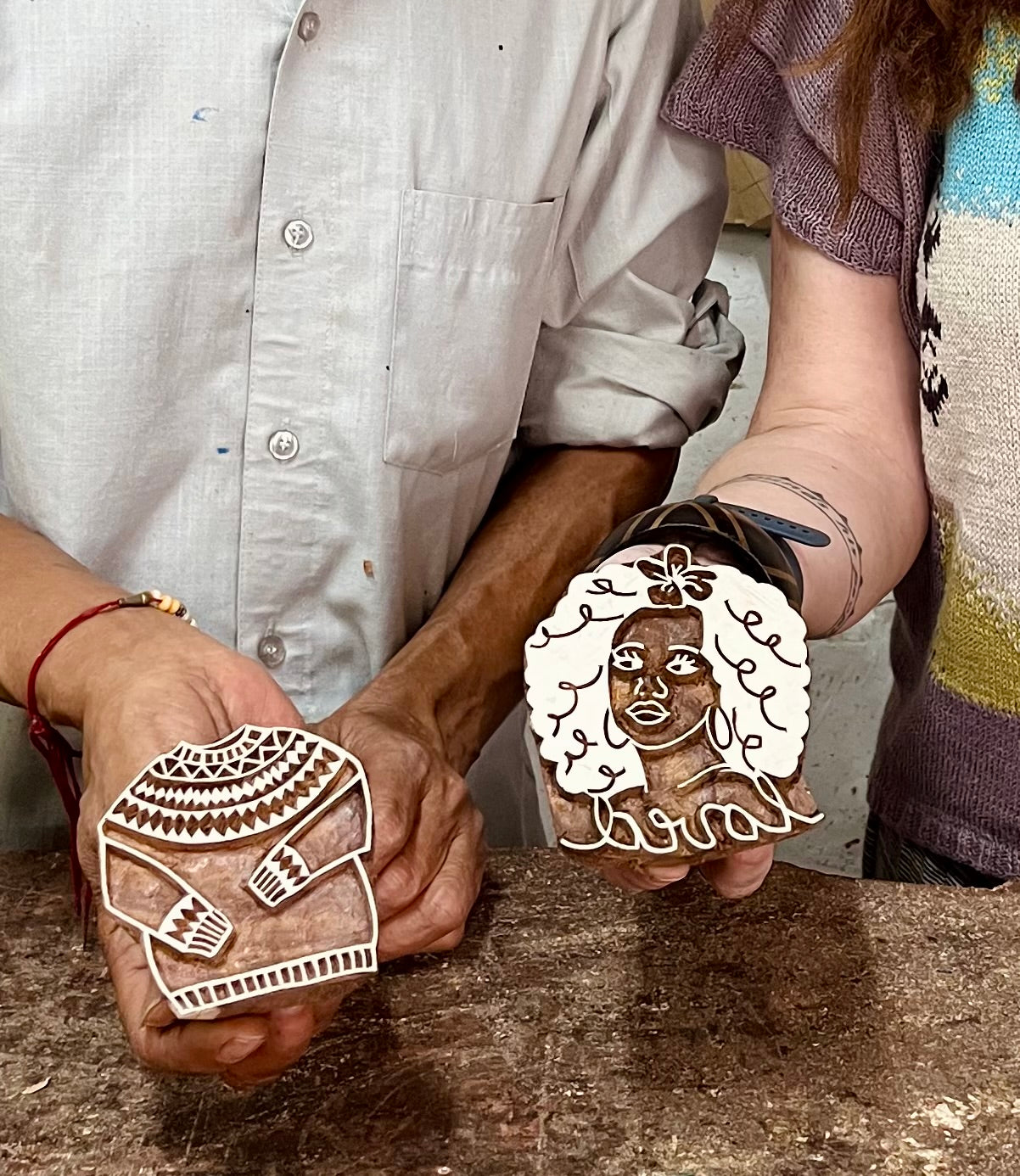 We started selling our cabled cardigan sweater stamps at knitting events, then quickly realized we needed to draw a fairisle yoke sweater for Pappu to carve! If youโre not a knitter, just ignore that comment! ๐ Our stamps can be used on paper, fabric, leather, ceramics, homemade soap, cookies, or simply as a paper weight or home decor.